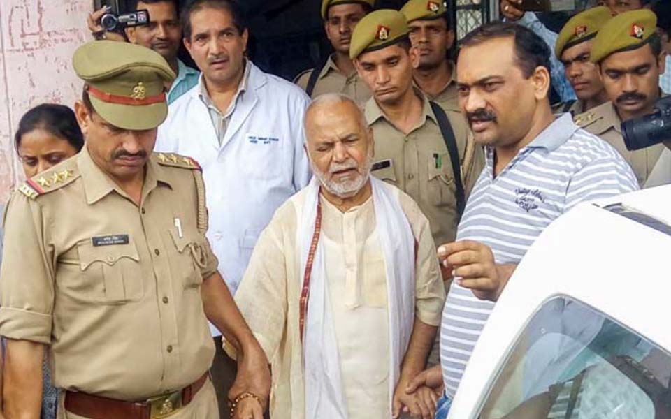 Shahjahanpur (UP): Former Union minister Swami Chinmayanand was offered flowers by supporters as he walked out of prison on Wednesday, two days after being granted bail in the case in which he is accused of sexually abusing a law student.