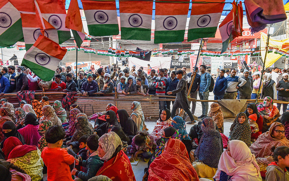A group of locals on Sunday staged a demonstration near the anti-CAA protest site in Delhi's Shaheen Bagh, demanding the removal of barricades from the road connecting Noida with Kalindi Kunj.