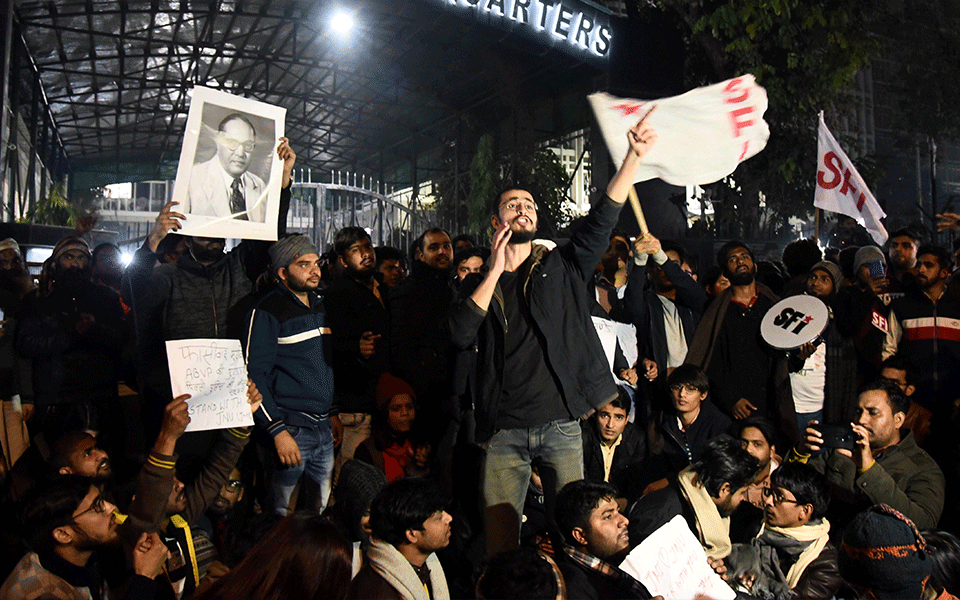 Students from various colleges here held a protest at the Gateway of India on Sunday midnight to condemn the JNU violence. Former JNU students Umar Khalid and Kunal Kamra were part of the group which also held a candlelight vigil to show solidarity with JNU students.