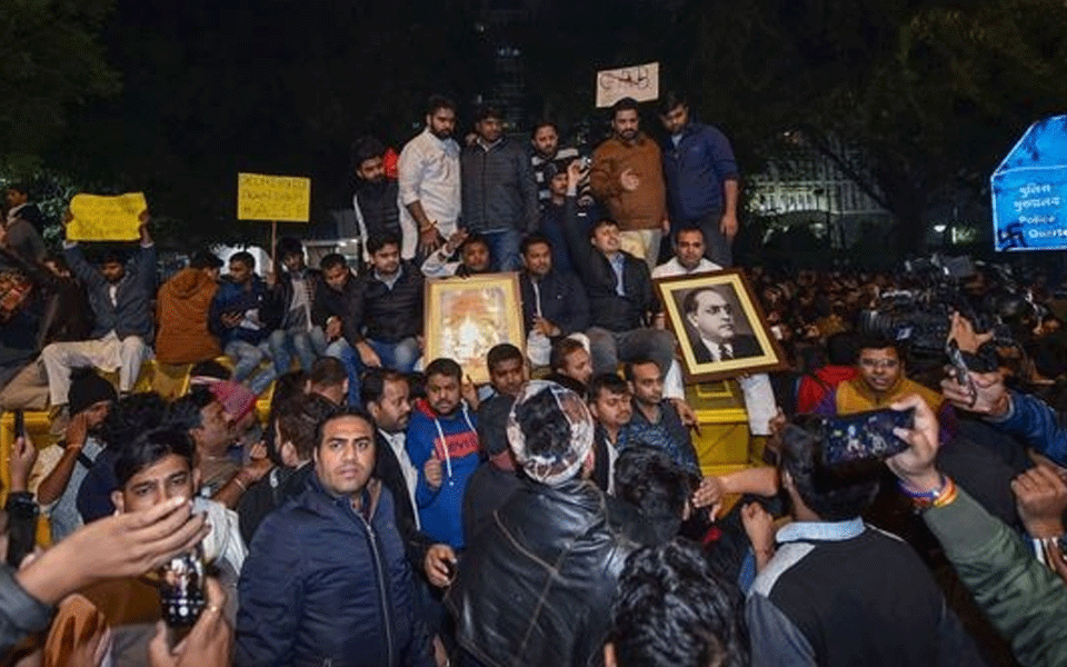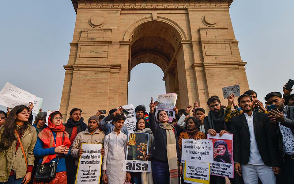 New Delhi: Slogans like "kagaz nahi dikhayenge" and "hum dekhenge" by scores of protesters reverberated on Wednesday at India Gate here where people took a mass pledge to "defend the Constitution" by opposing the Citizenship Amendment Act (CAA).
