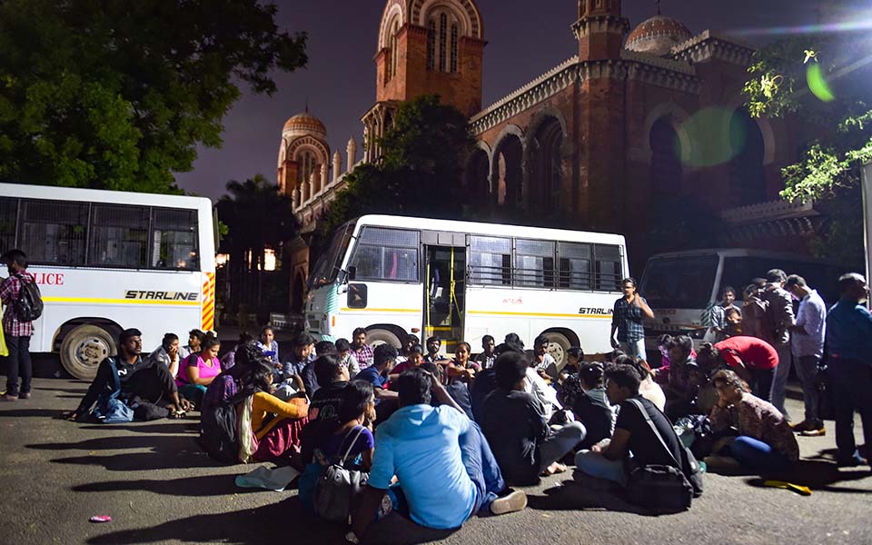 Chennai: A section of the students of the Madras University continued their protest for the second day on Tuesday against the amendment to the Citizenship Act, as police entered the campus.