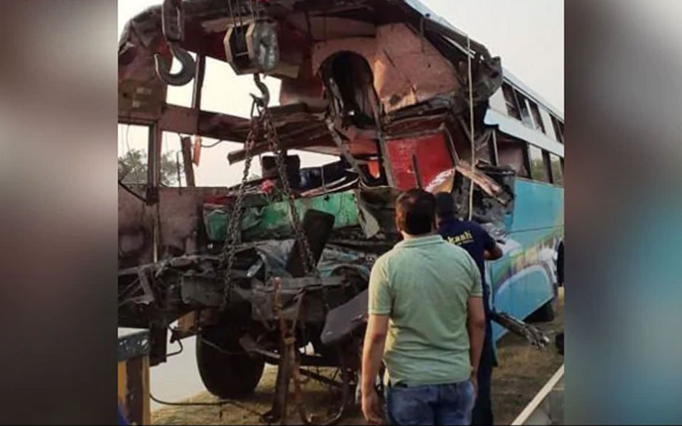 Eight people were killed on Friday morning when a privately operated bus rammed into a stationary truck on the Yamuna Expressway in Greater Noida, officials said.