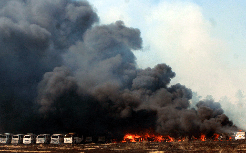 Chennai: Over 170 cars were gutted Sunday when a major fire swept through a parking lot at a suburban neighbourhood, with thick columns of black smoke engulfing the entire area, inconveniencing the people and causing anxiety.