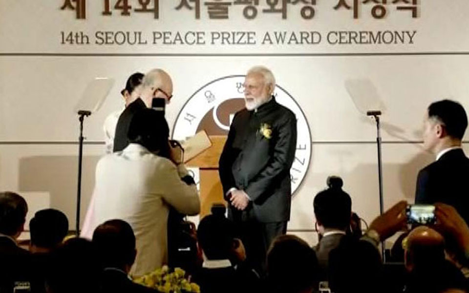 Prime Minister Narendra Modi on Friday received the prestigious Seoul Peace Prize for 2018 for his contribution to international cooperation and fostering global economic growth.