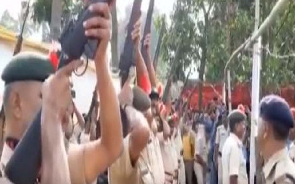 Patna: While former Bihar Chief Minister Jagannath Mishra's mortal remains were being cremated with full state honours on Wednesday, guns toted by 22 police personnel failed to fire a single shot.