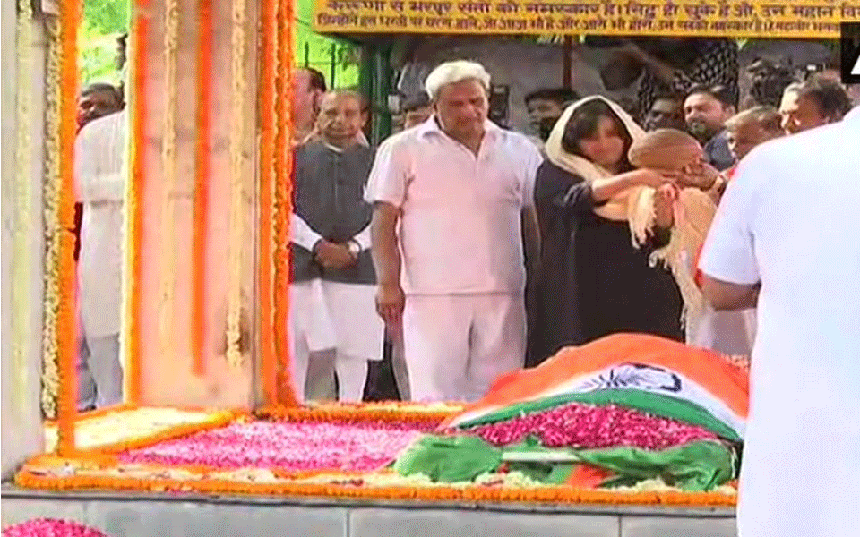 The mortal remains of former external affairs minister Sushma Swaraj were consigned to flames on Wednesday at the Lodhi Road crematorium here.