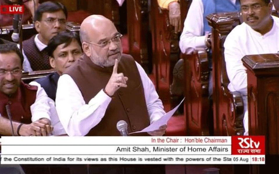 Some opposition parties termed the scrapping of Article 370 in Jammu and Kashmir and its bifurcation into two union territories as a "black blot", with Congress leader Ghulam Nabi Azad Monday charging the state's head, considered as India's crown, has been "chopped off" and its identity removed.
