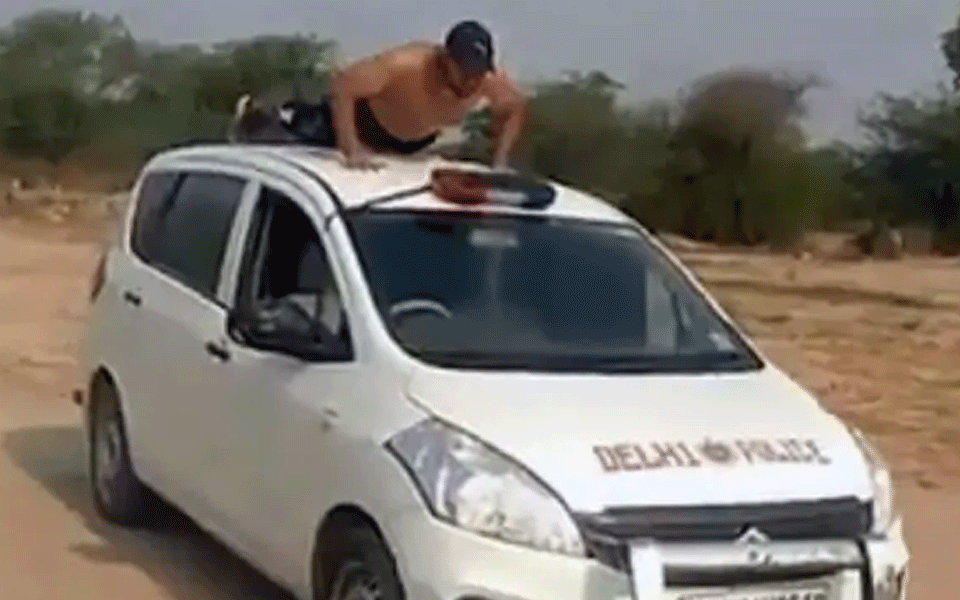 An inquiry has been initiated after a video of a man doing stunts in a vehicle that had 'Delhi Police' written on it surfaced on social media, officials said on Wednesday.