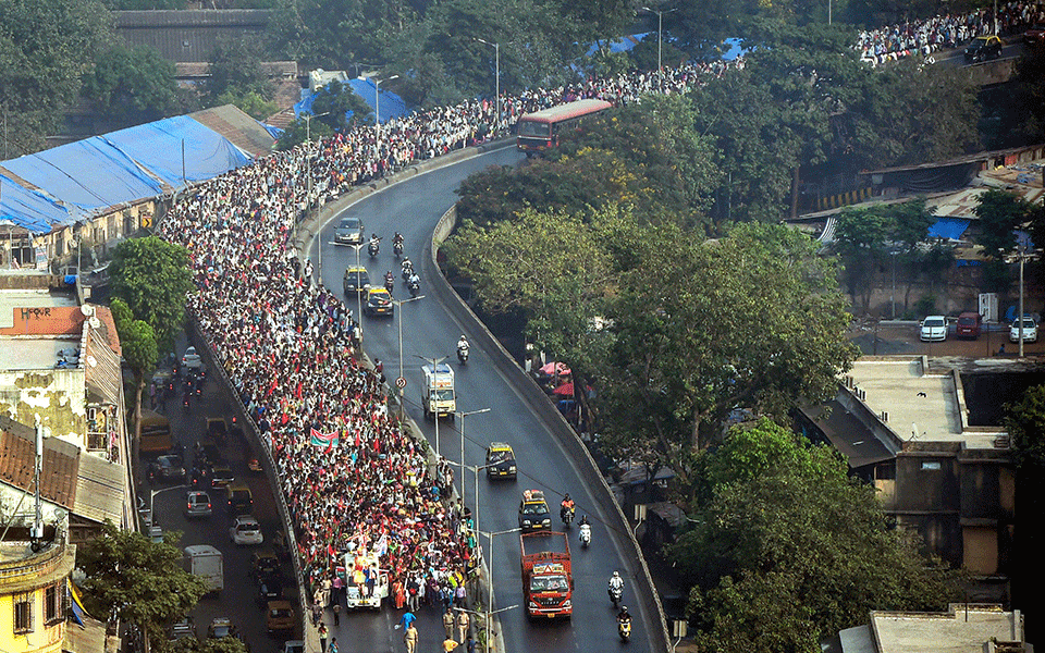 Thousands of Farmers march to Mumbai's Azad Maidan for land rights, drought relief