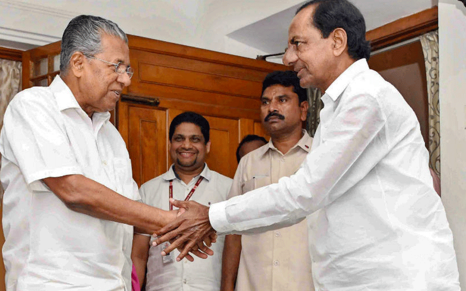 Telangana Chief Minister K Chandrashekhar Rao, who floated the idea of a non-Congress, non-BJP Front some time ago, met his Kerala counterpart Pinarayi Vijayan here Monday.