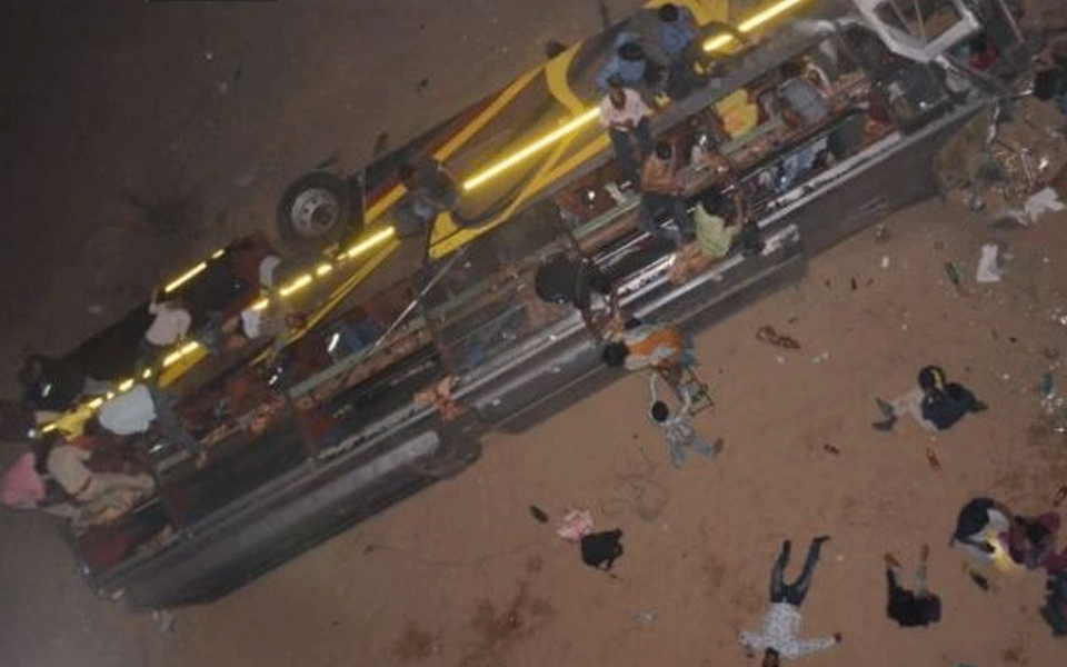 At least seven persons were killed and 35 injured after a bus fell into the Mahanadi riverbed from a bridge near Jagatpur on the outskirts of the city Tuesday evening, police said.
