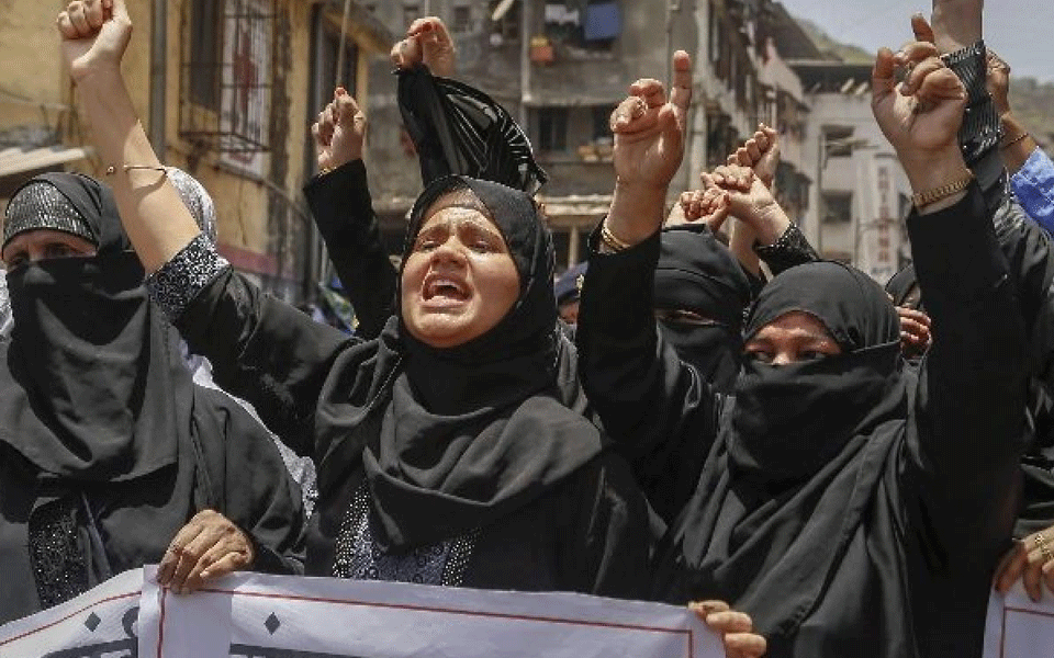 Thane: Hundreds of Muslim women protested against the Shiv Sena mouthpiece `Saamana' at Mumbra near here Friday for demanding that India should ban burqa.