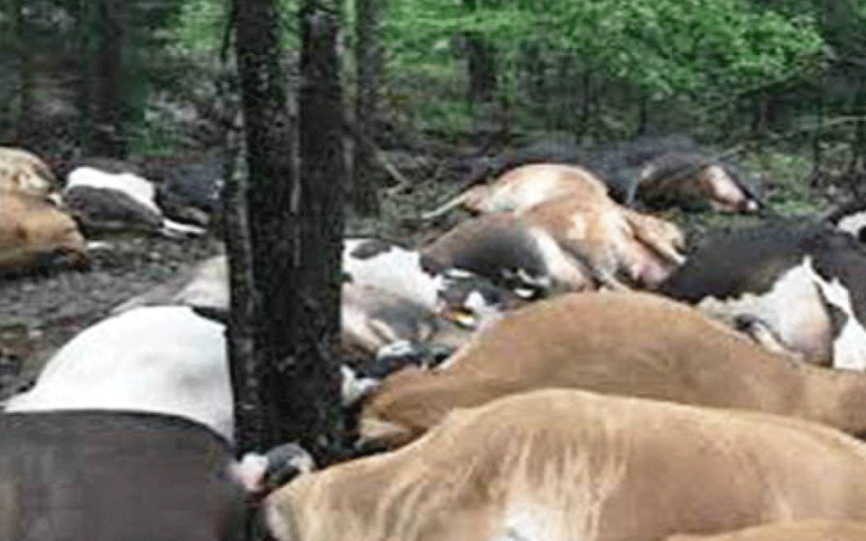 Eleven cows died of electrocution at a 'goshala' (cow shelter) here when they came in contact with a live electric wire, police said Thursday.