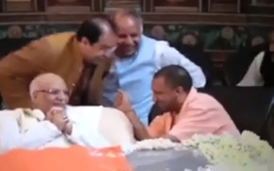 The video clip that has gone viral shows CM Yogi Adityanath with Bihar Governor Lalji Tandon in the front row, while UP ministers Mohsin Raza and Ashutosh Tandon were sitting behind them.