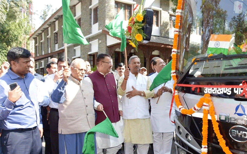 Giving impetus to the policy encouraging pollution-free vehicles in Uttarakhand, Chief Minister Trivendra Singh Rawat on Tuesday flagged off the trial run of the hill-state's first electric bus here, a statement said.