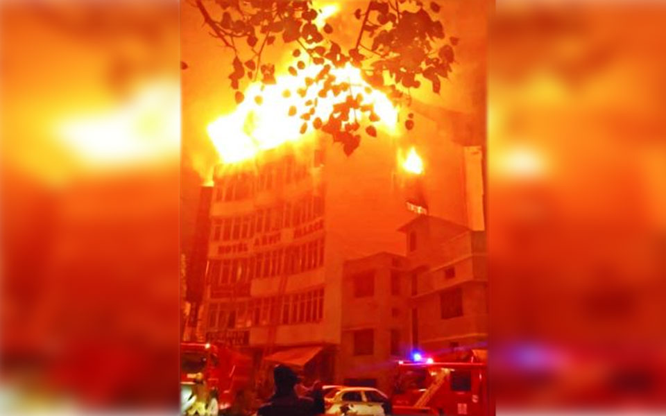 Three persons jumped off different floors of a hotel which caught fire in central Delhi in the wee hours of Tuesday, two of whom including an IRS office died in a desperate bid to save themselves.