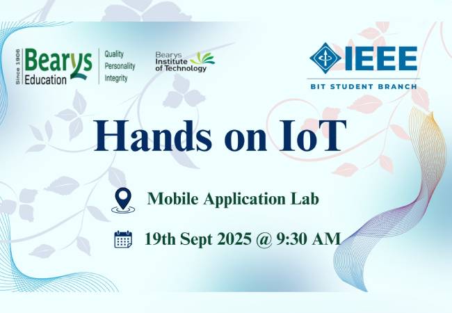The Bearys Institute of Technology (BIT), in association with the IEEE Mangalore Subsection, organised a Hands-on IoT Workshop for students of the ECE and CSE departments on Friday. The session was coordinated by Dr. Abdullah Gubbi, Head of the ECE Department.