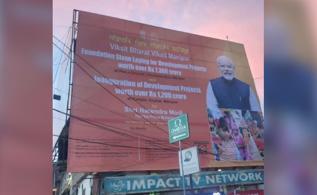 Several billboards and banners welcoming Prime Minister Narendra Modi to Manipur were put up in the state's capital Imphal on Friday.