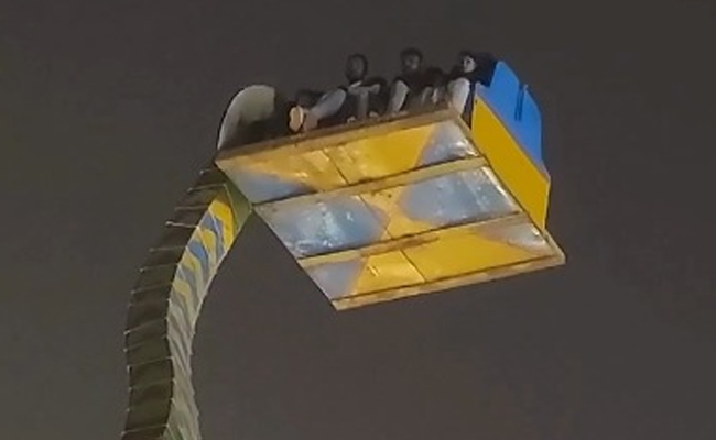 At least eight people remained stranded for nearly two hours on a mechanical swing that suddenly malfunctioned while in motion at a height of about 30 feet above the ground at the Bali Jatra here, police said.