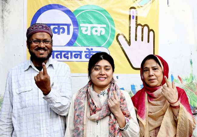 Polling was underway at a moderate pace on Thursday across 121 assembly constituencies of Bihar, where 53.77 per cent of 3.75 crore voters had exercised their franchise till 3 pm to decide the fate of over 1,000 candidates, even as Deputy Chief Minister Vijay Kumar Sinha alleged that his convoy was attacked by RJD supporters in his home turf Lakhisarai.