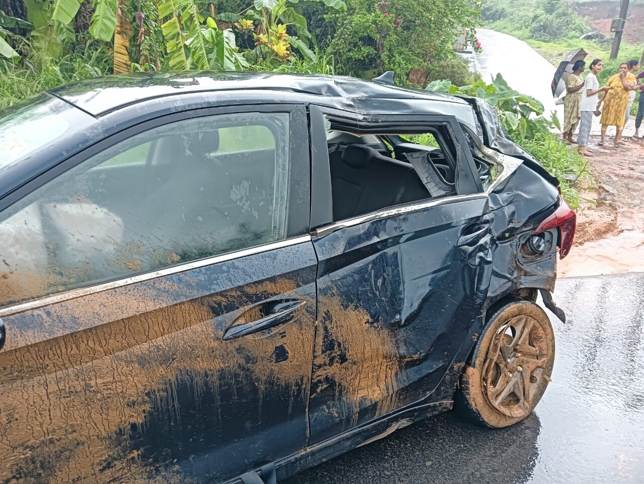 According to reports, the accident occurred while they were en route from Puttur to a private hospital in Mangaluru. As they approached Ramal Katte, heavy rainfall caused the driver to lose control of the vehicle, resulting in it colliding with a hill by the roadside and flipping onto the road.
