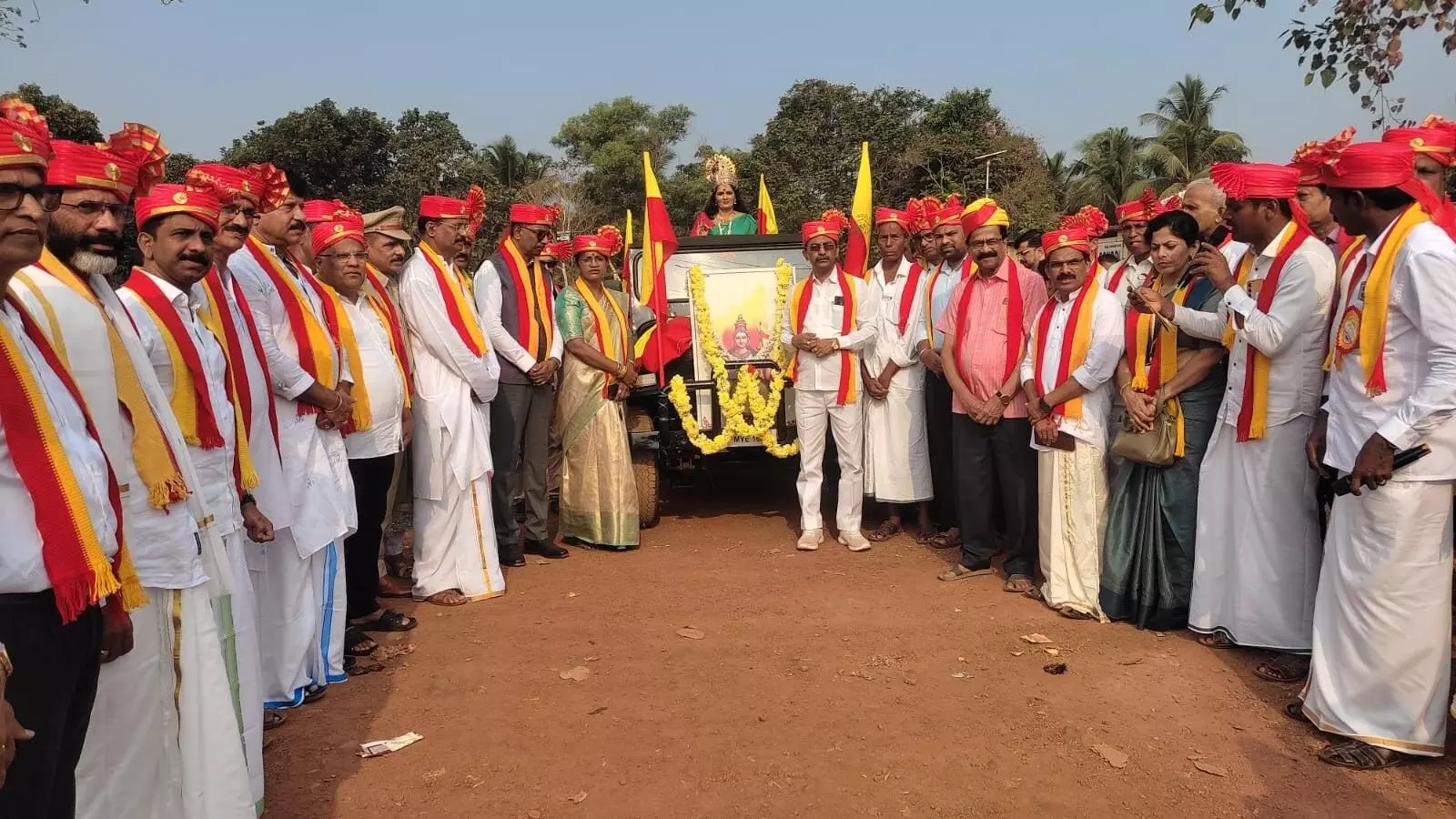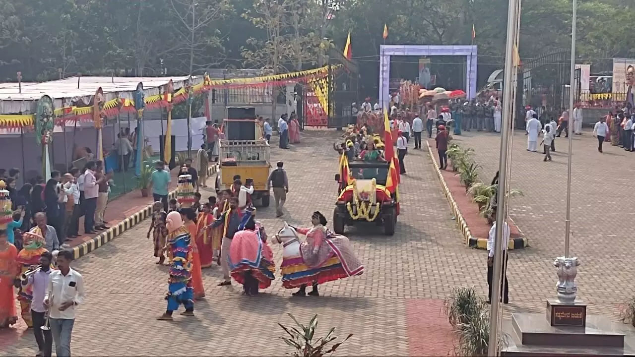 Ullal Taluk Panchayat Executive Officer Gurudutt MN paid floral tribute to Goddess Bhuvaneshwari, who represents Kannada land, language and culture, as a part of the procession.
