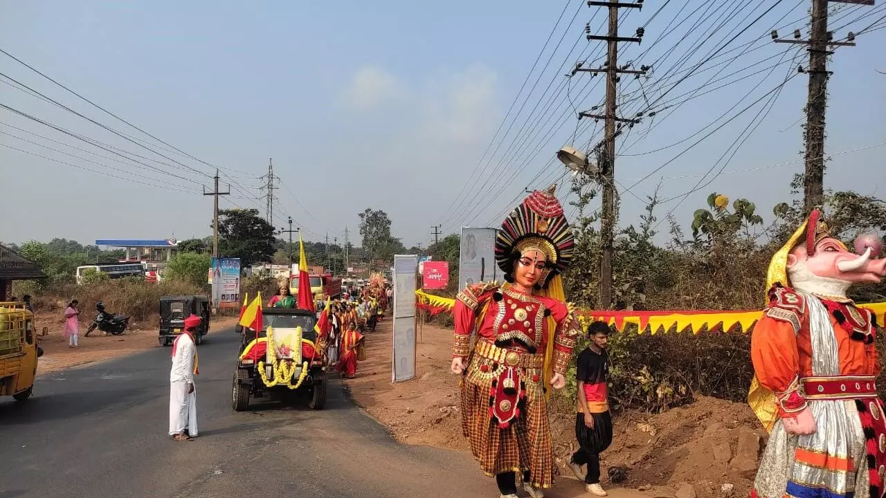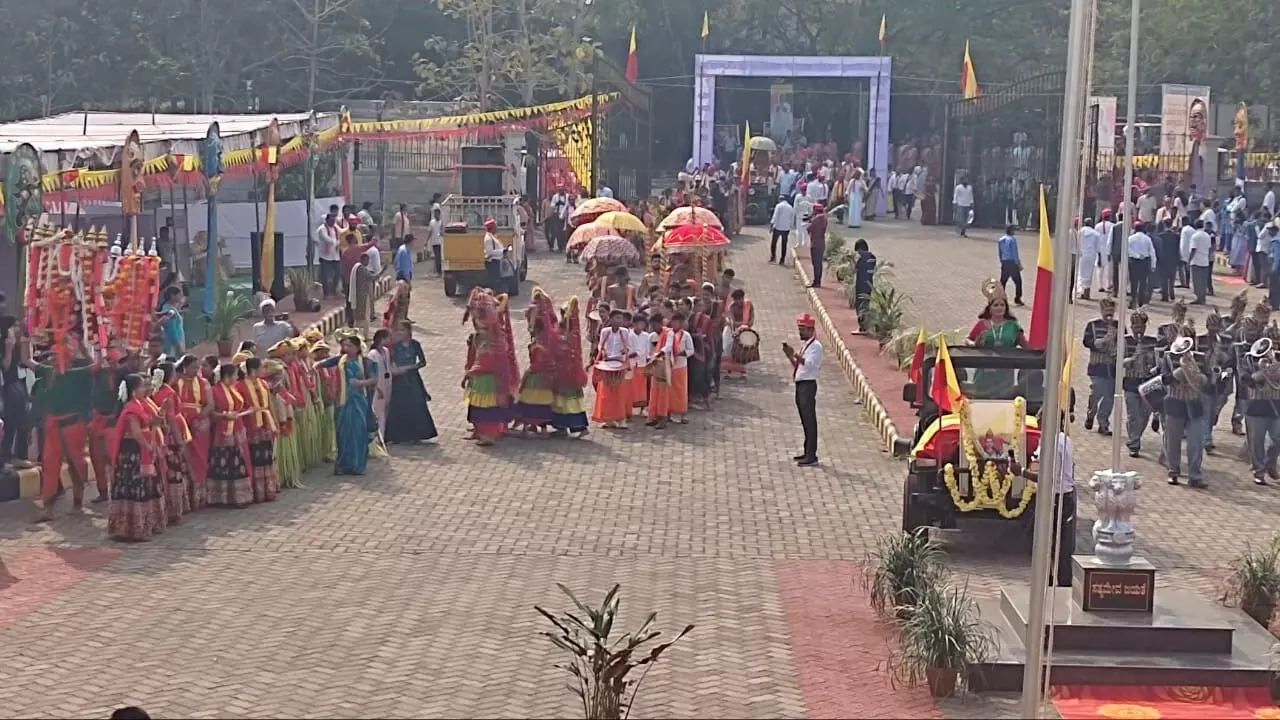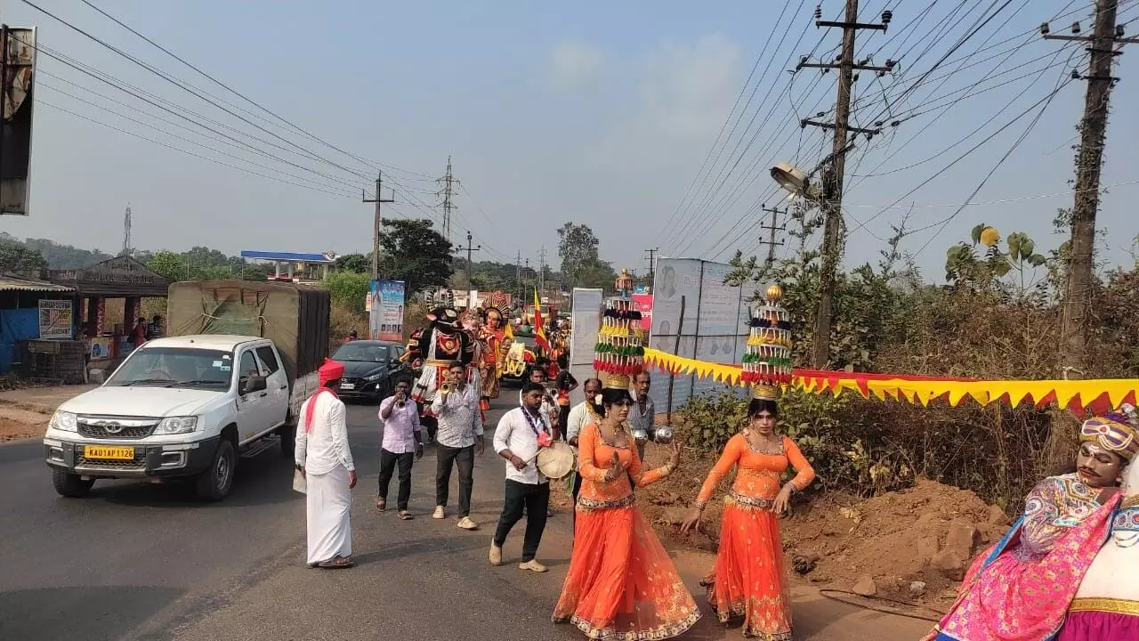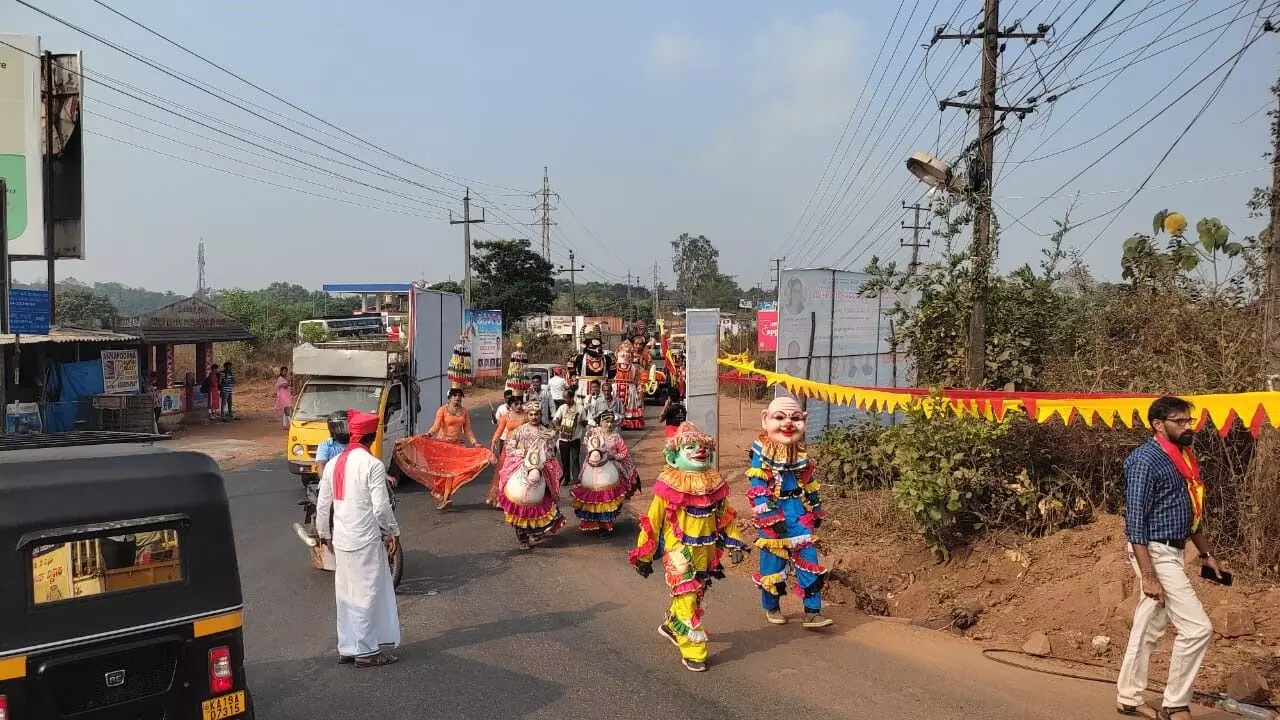 The rally continued till the venue of the event, which is being held at the ‘Mangala’ Hall of Mangaluru University, Konaje, and included various cultural troupes presenting art forms like ‘keelu kudure’, ‘kolata’, ‘suggi kunita’, ‘kangeelu, ‘pooja kunita’, ‘dollu kunita’, ‘kamsale’, ‘gombe kunita’, Yakshagana and folk songs by schoolchildren.