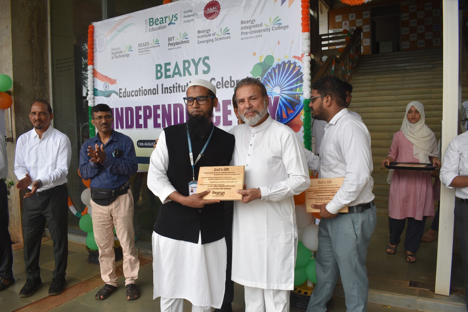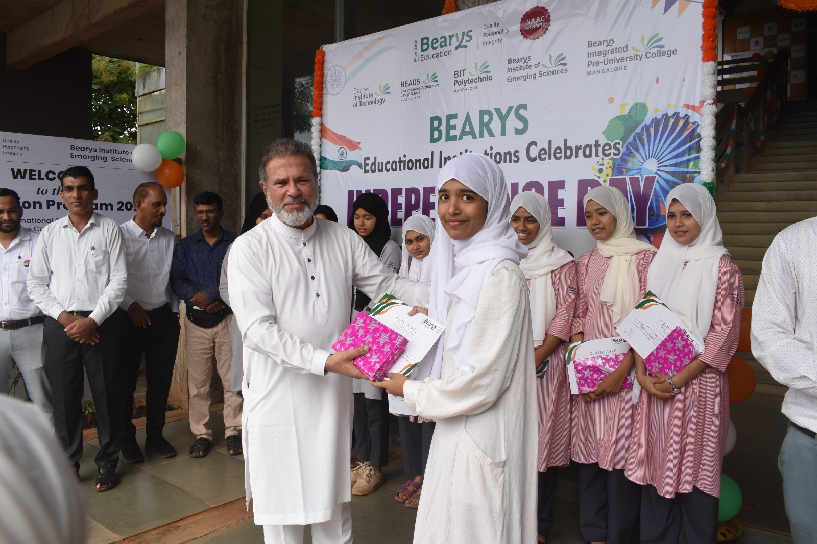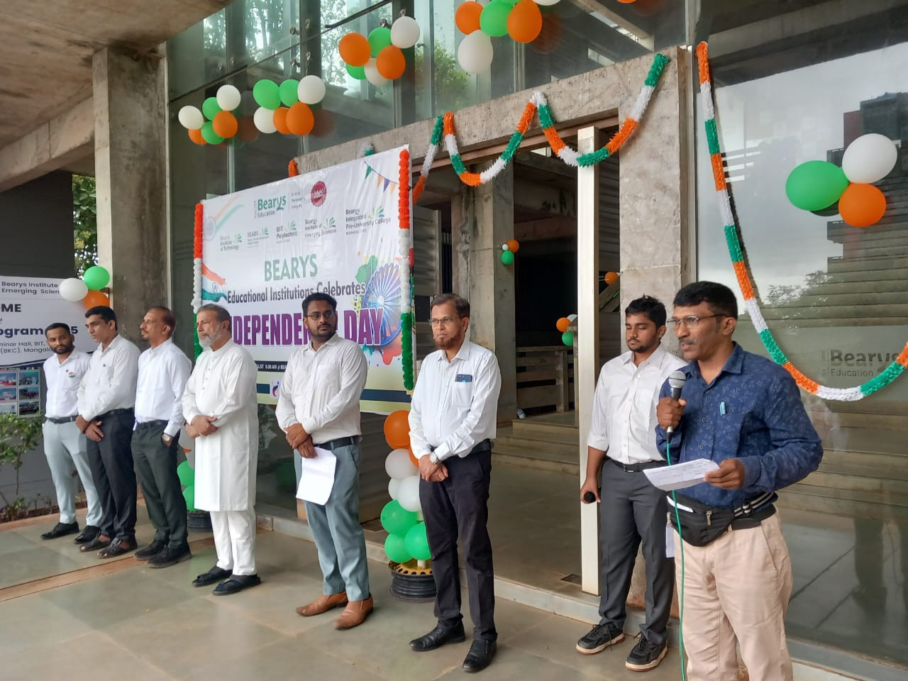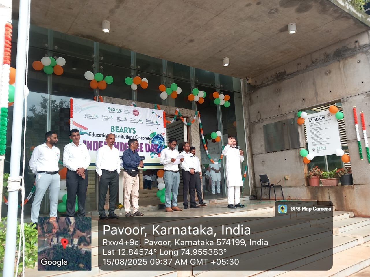 Mangaluru: The Bearys Group of Institutions, Mangalore, celebrated the 79th Independence Day with patriotic fervor and enthusiasm at the Bearys Knowledge Campus, Innoli. The event began at 9:00 AM, with Summaya Nasir from 7th Semester AI & DS delivering the warm welcome address, while Mohammad Hashim efficiently compered the program.