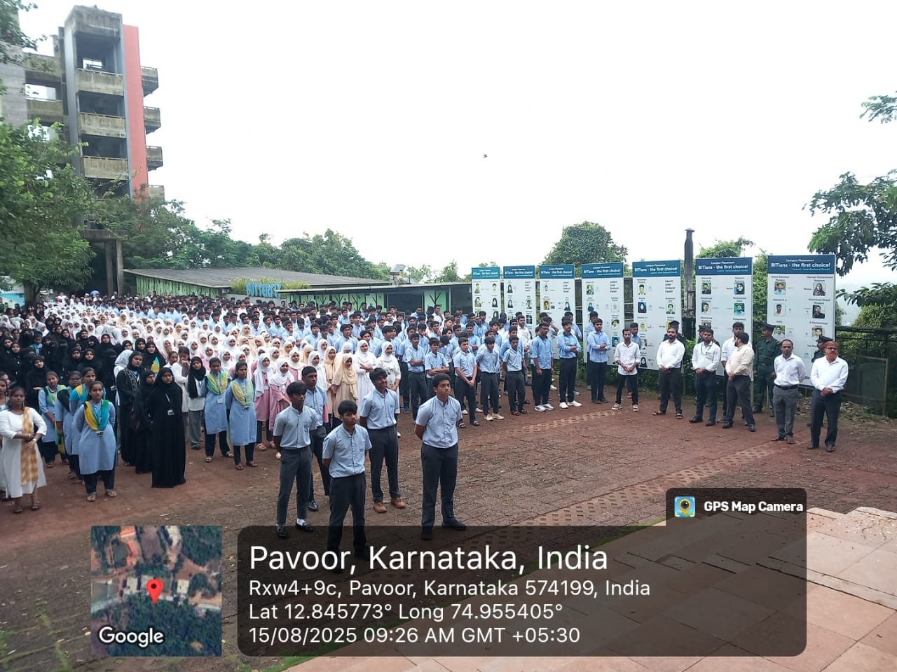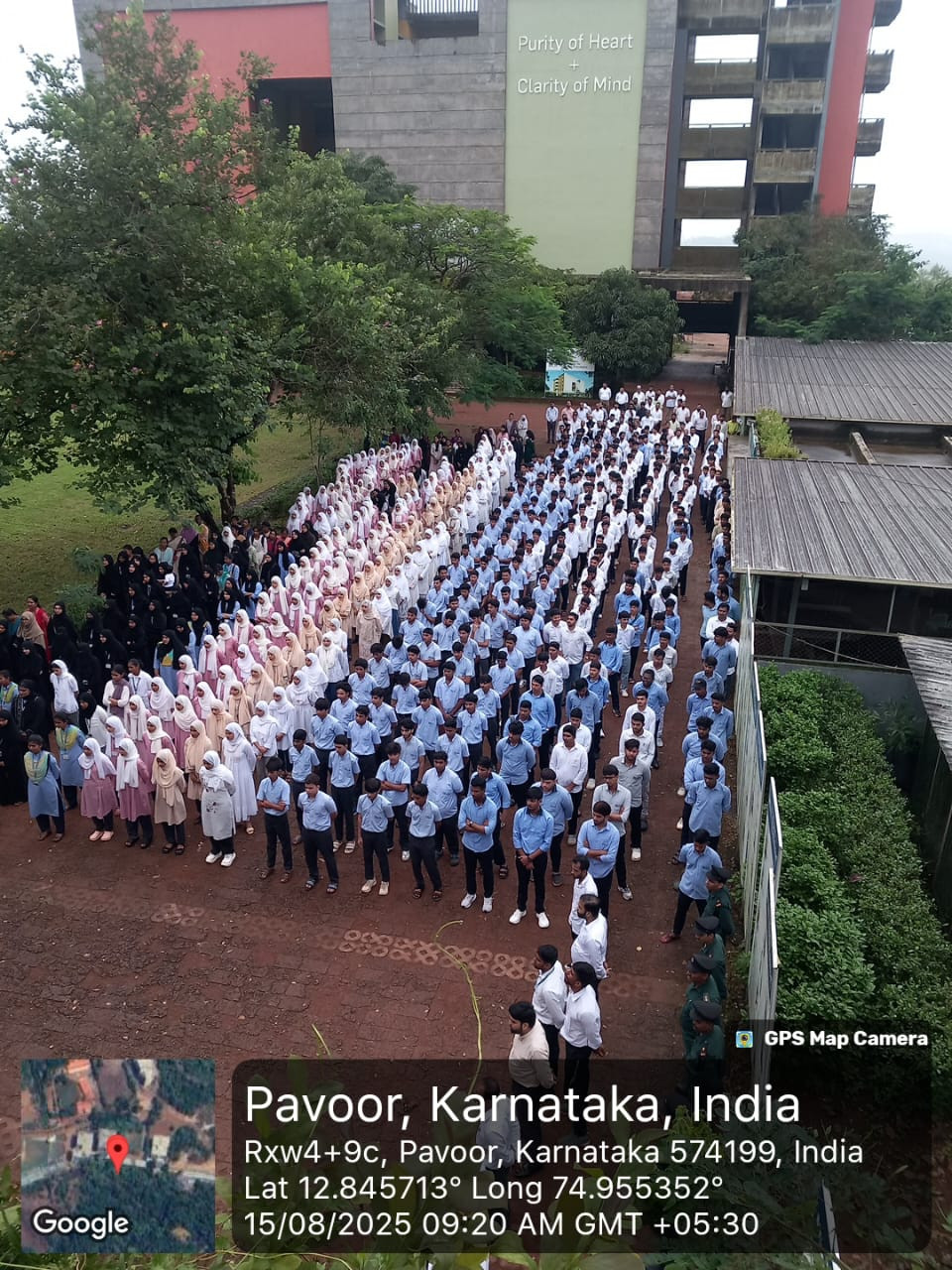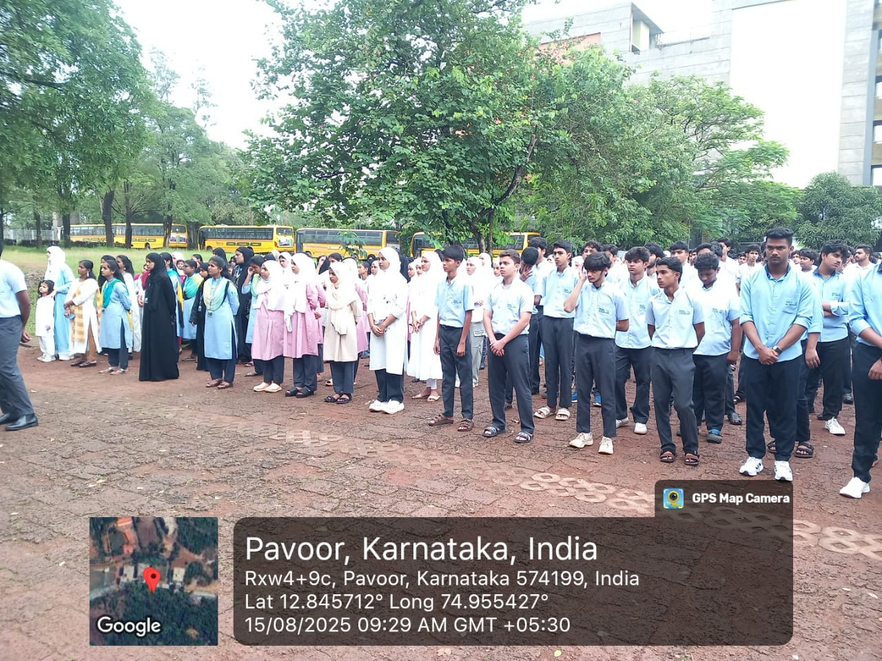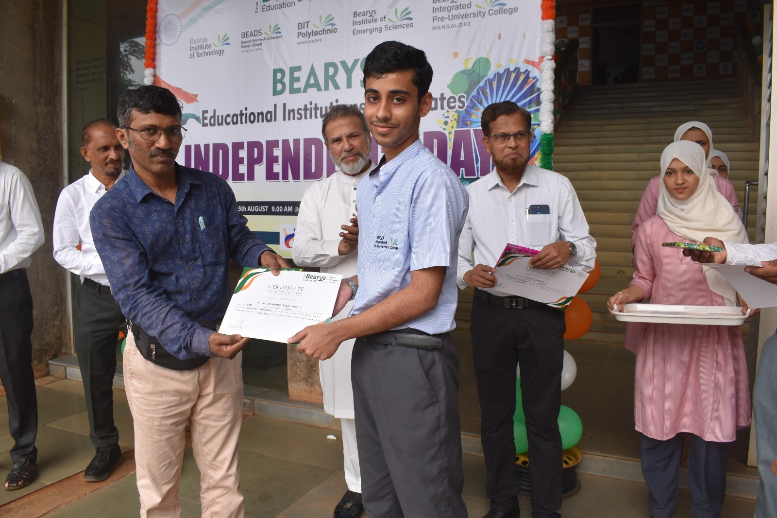 Mangaluru: The Bearys Group of Institutions, Mangalore, celebrated the 79th Independence Day with patriotic fervor and enthusiasm at the Bearys Knowledge Campus, Innoli. The event began at 9:00 AM, with Summaya Nasir from 7th Semester AI & DS delivering the warm welcome address, while Mohammad Hashim efficiently compered the program.