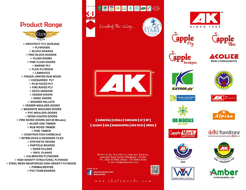Today AK plywood is considered as one of the best plywood manufacturers in whole of India and the largest from South India. The company is holding one of the widest product range and is in the process of expanding the range even more. Under his able guidance, the company has itself established as a leading supplier to all the leading hotel chains like ITC, taj, raddison, Hilton and many more.