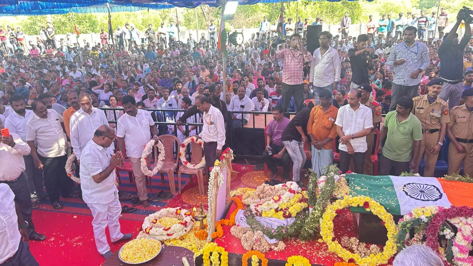 His remains were received at Mangaluru International Airport on Thursday morning. The body was then transported to Beejady, where crowds lined the streets to offer their tributes.