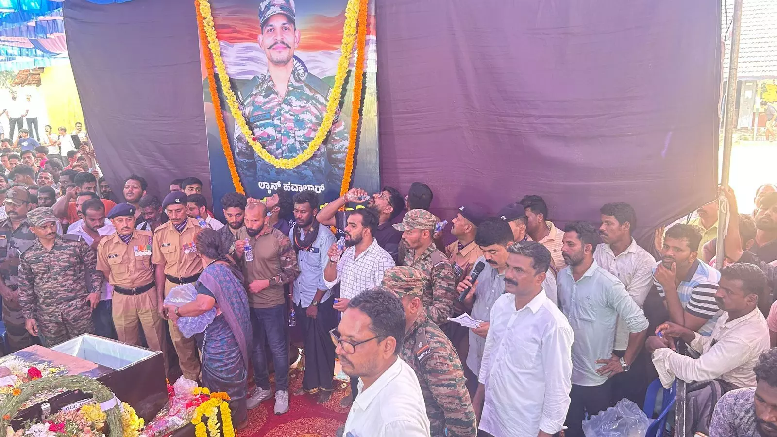 Udupi (Karnataka), Dec 26: Lance Havaldar Anoop Poojary (33), who died in an army vehicle accident in Poonch, Jammu and Kashmir, was cremated with full state and military honours in his native village of Beejady in Udupi district on Thursday.