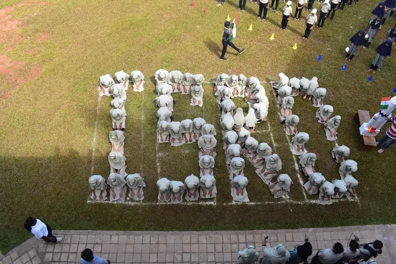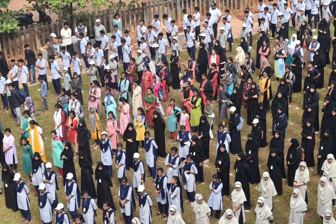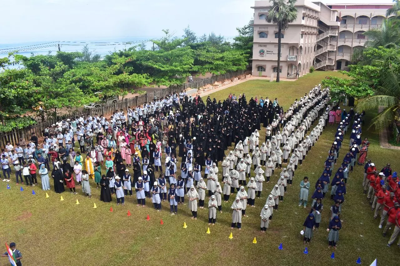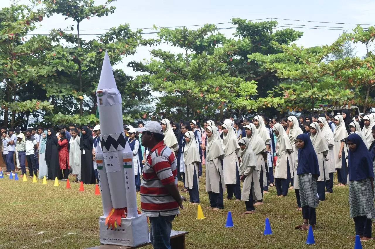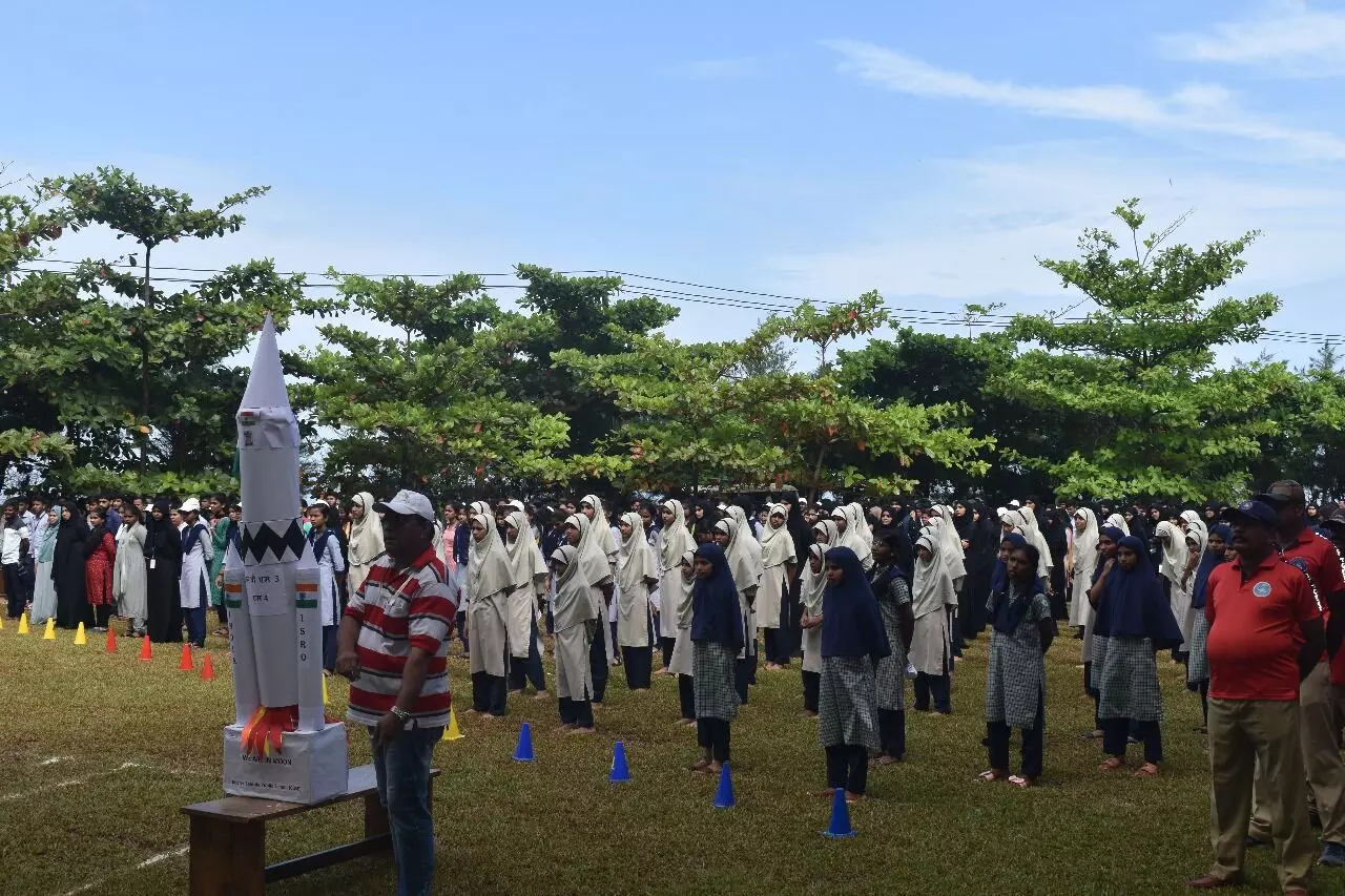 The teachers and students of the Bearys Seaside Public School prepared a model of the Chandrayaan-3 launcher. They also formed a human chain showing 'ISRO' and sang patriotic songs, paying tribute to the national institution.