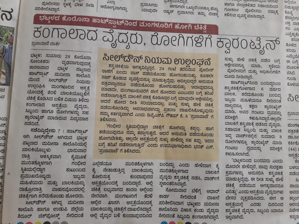 “As the child was hailing from a COVID Hotspot as Bhatkal had 10-12 Corona positive cases, the patient and mother were isolated and the district health officials were duly informed. As the mother was emotional and anxious it appeared that she had upper respiratory symptoms and hence once again the district health officials suggested getting a ‘throat swab’ done of both mother and child which was duly done by the health authorities in the evening of 11th May” the statement from hospital added.