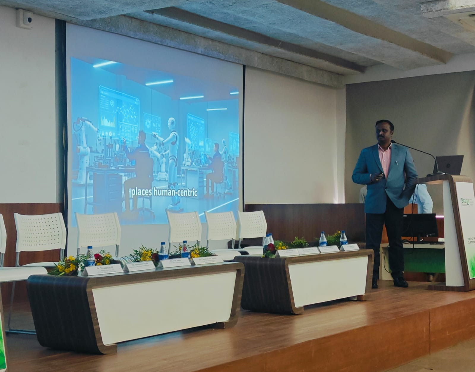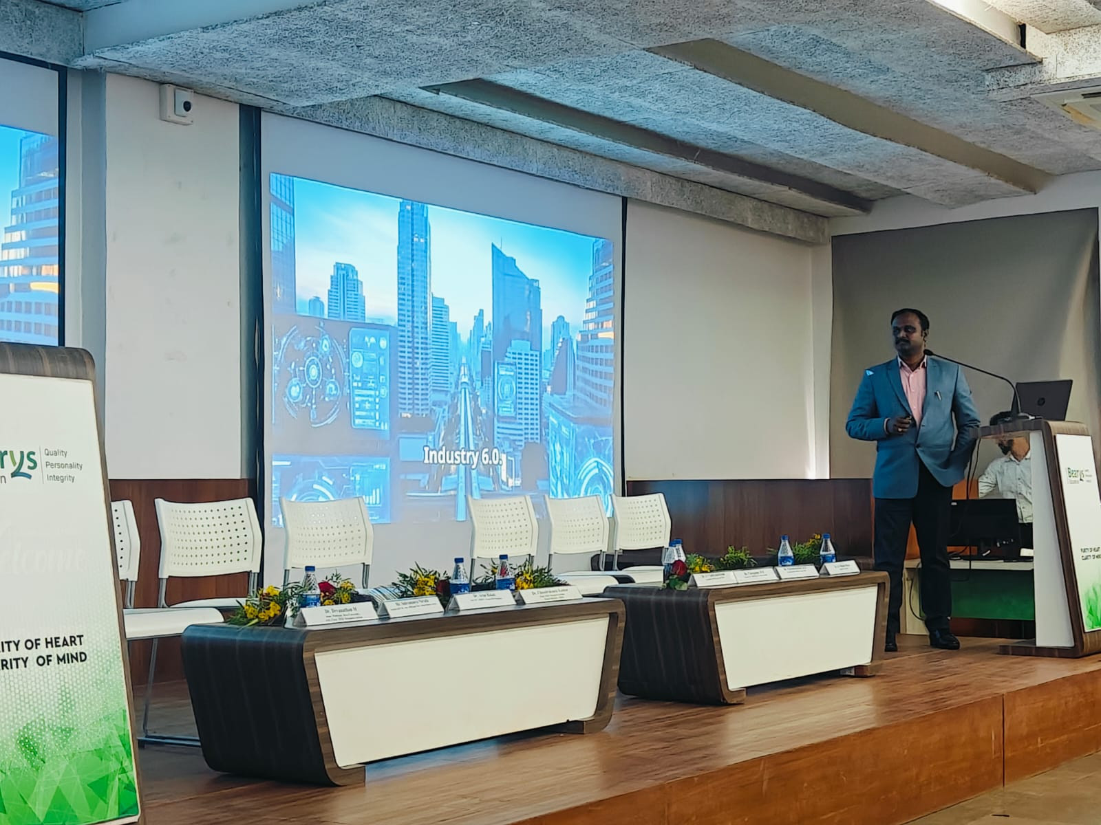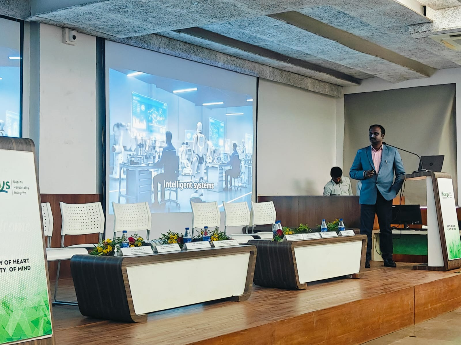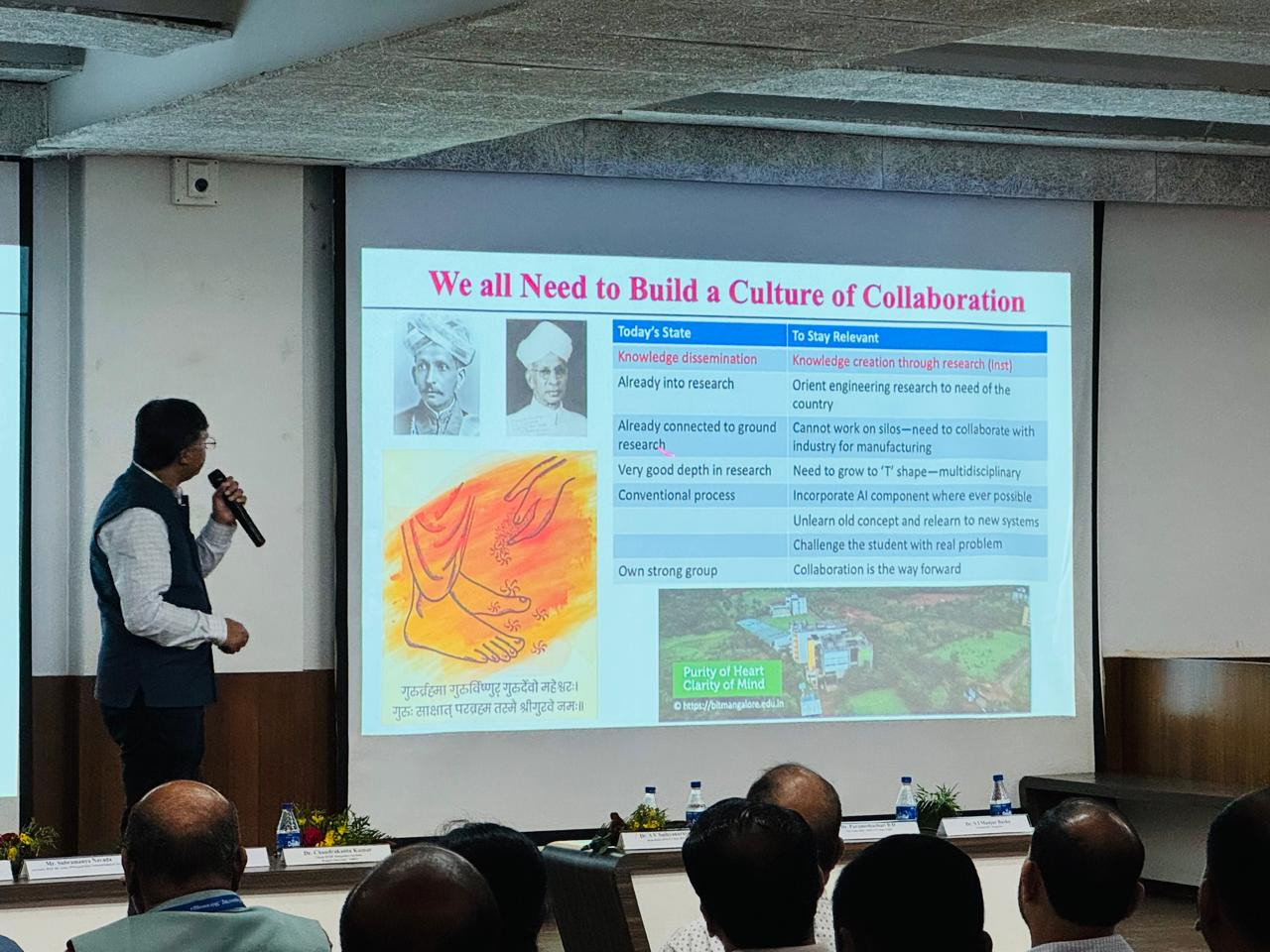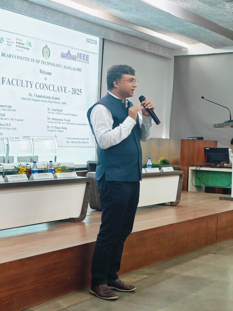 Delivering the keynote address, Dr. Chandrakanta Kumar, Chair of IEEE Bangalore Section and Project Director at ISRO, urged the academic community to “wake up to the dream of a developed nation.” He emphasised the need for preparedness across service, agriculture, and industrial sectors and stressed on how faculty play a crucial role in shaping students to meet future challenges.