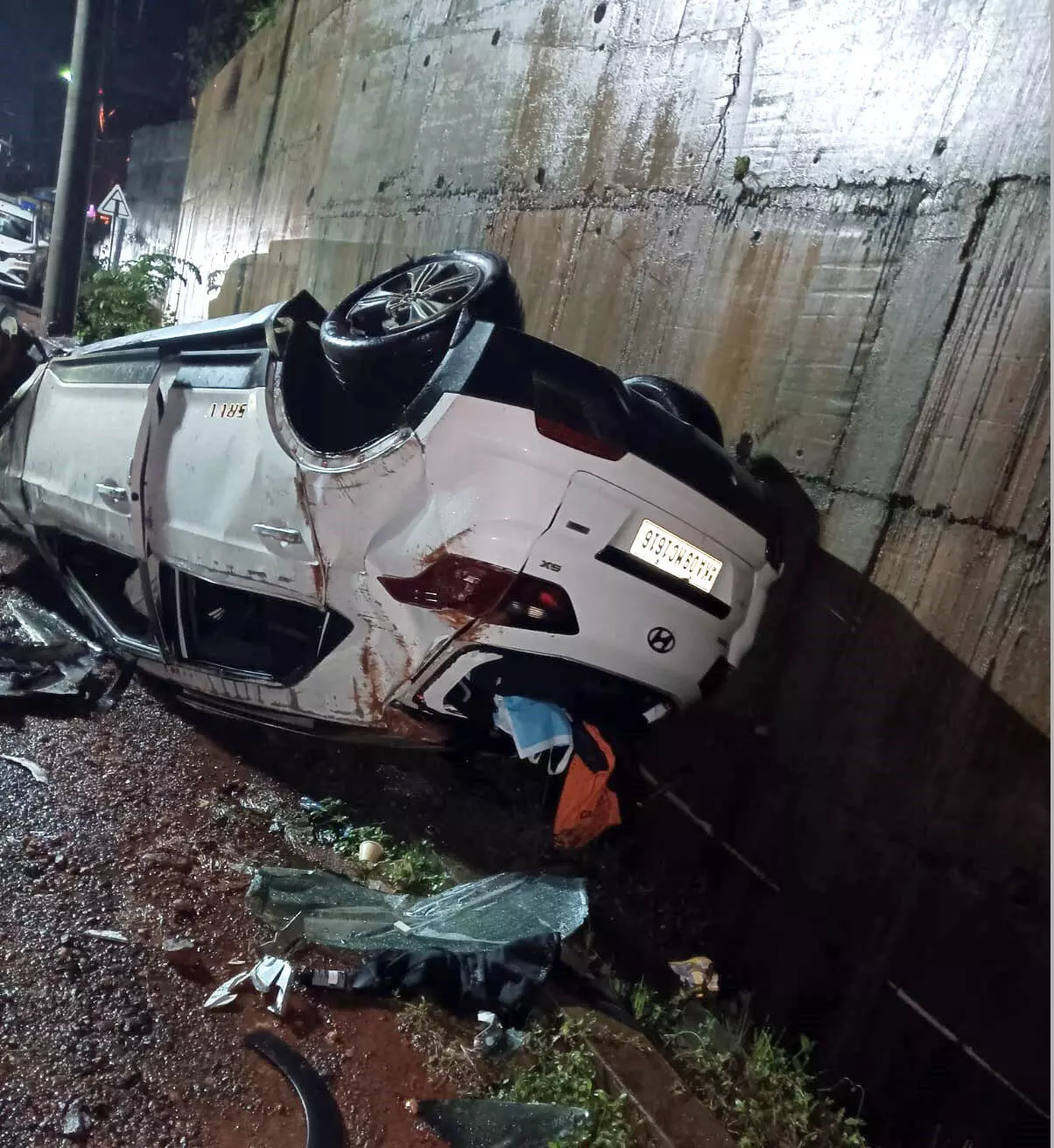The car was traveling from Deralakatte near Mangaluru city to Thokkottu. The accident allegedly occurred as the speeding car ran over the cattle lying on the road. As a result, the driver lost control over the car, which toppled on the road and was severely damaged.
