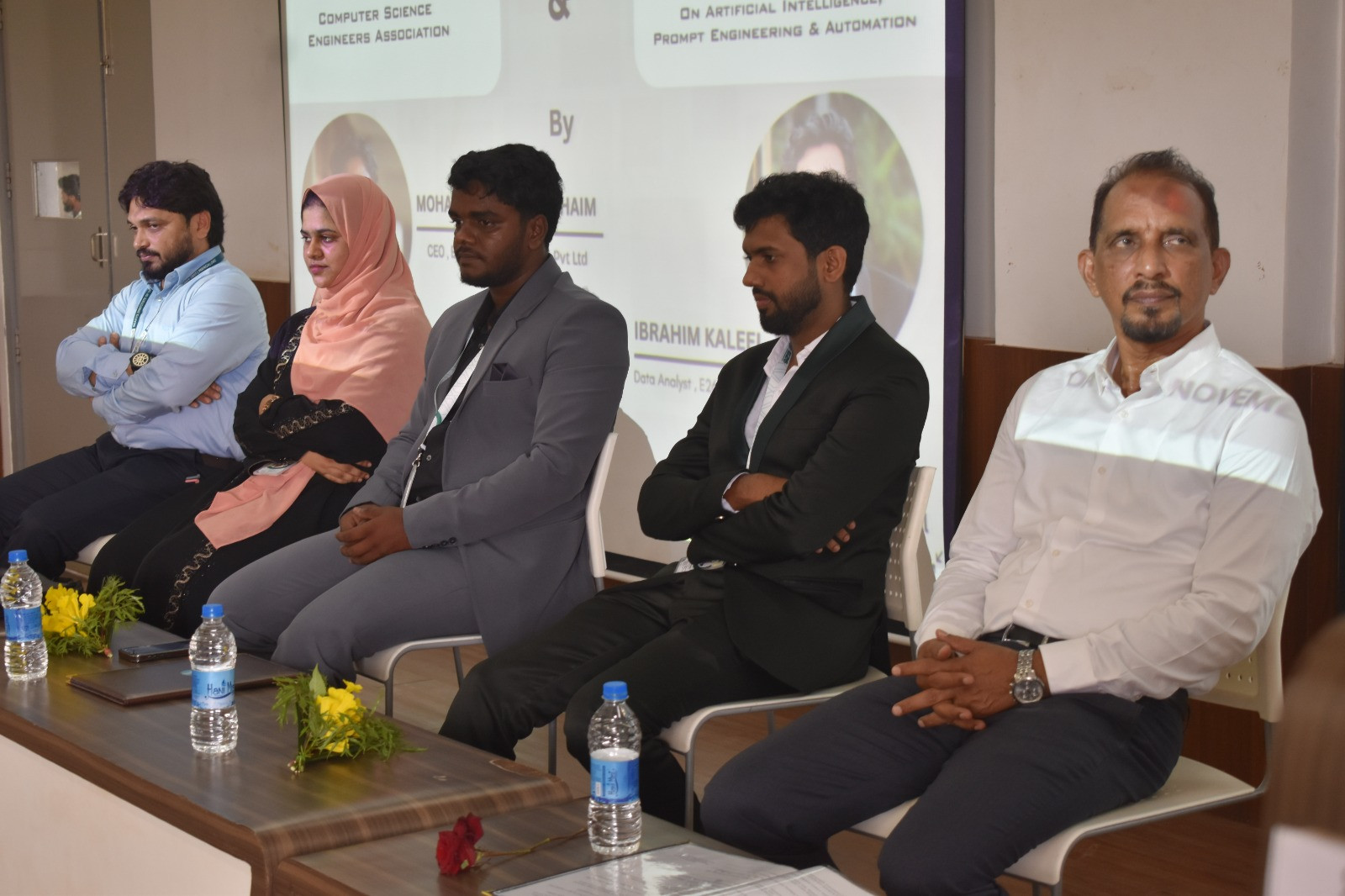 Alongside, the event also featured a hands-on workshop on Artificial Intelligence, Prompt Engineering, and Automation, conducted by Mohammed Hazeem Shaim and Ibrahim Kaleel.