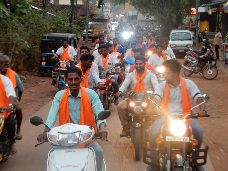 On Thursday, Mithun shared pictures of his campaigning activities in Bantwal on Facebook, which caught attention of the people. One picture of party workers’ bike rally and workers' convention in Vamadapadavu in Bantwal Taluk particularly was the talk of the town as all his supporters were seen wearing Saffron shawl, confusing people if it was a Congress candidate’s rally or BJP’s.