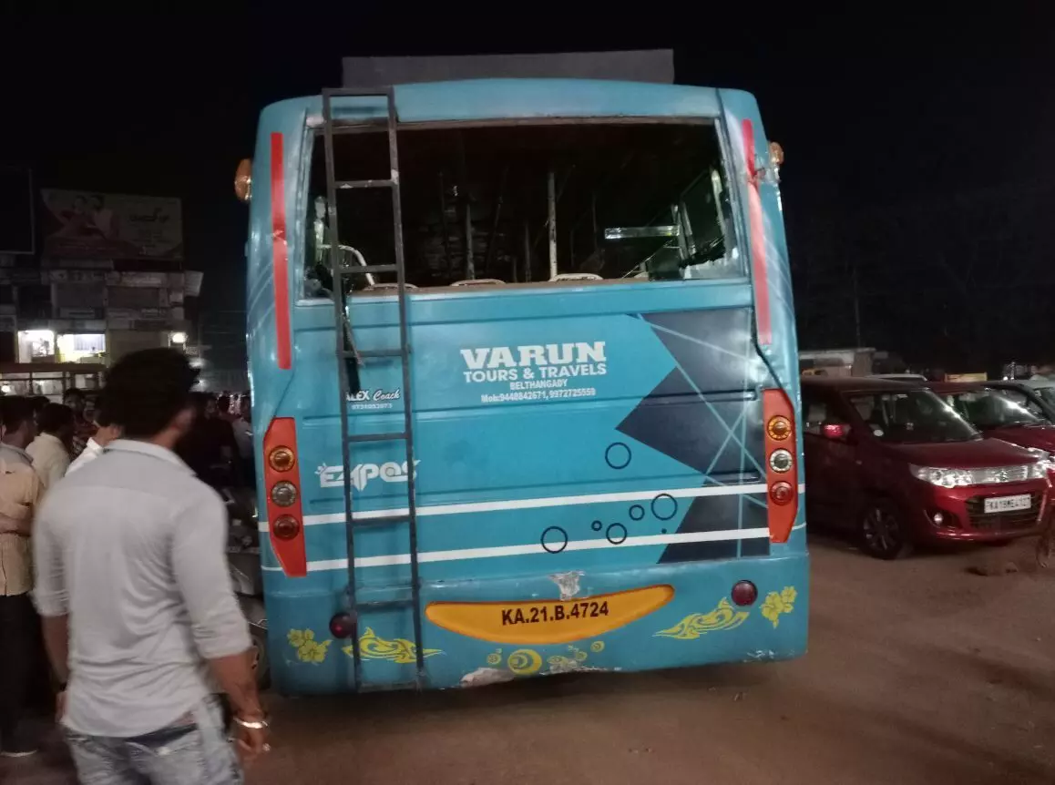 Meanwhile, locals alleged the driver of recklessly reversing, causing damage to shops owned by Nagaraj Bhat and Anil Kumar and vehicles and resulting in the bus entering the Uppinangady Grama Panchayat Commercial Complex.