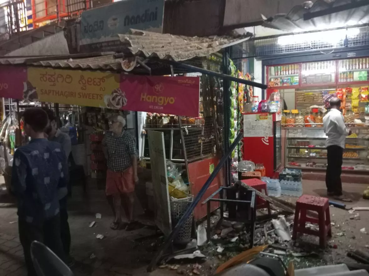 Uppinangady: A private bus operator reportedly lost control of the vehicle while reversing at the Uppinangady bus stand on Saturday evening, damaging two shops and several vehicles parked in the parking lot. There were no reported casualties from the incident.