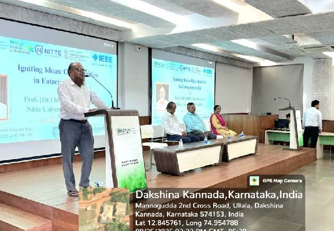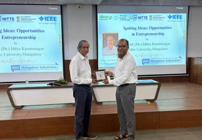 Mangaluru: Bearys Institute of Technology (BIT), in association with IEEE BIT Student Branch and IEEE Mangalore Subsection, organised an invited talk on “Igniting Ideas: Opportunities in Entrepreneurship” at the International Seminar Hall on August 25.