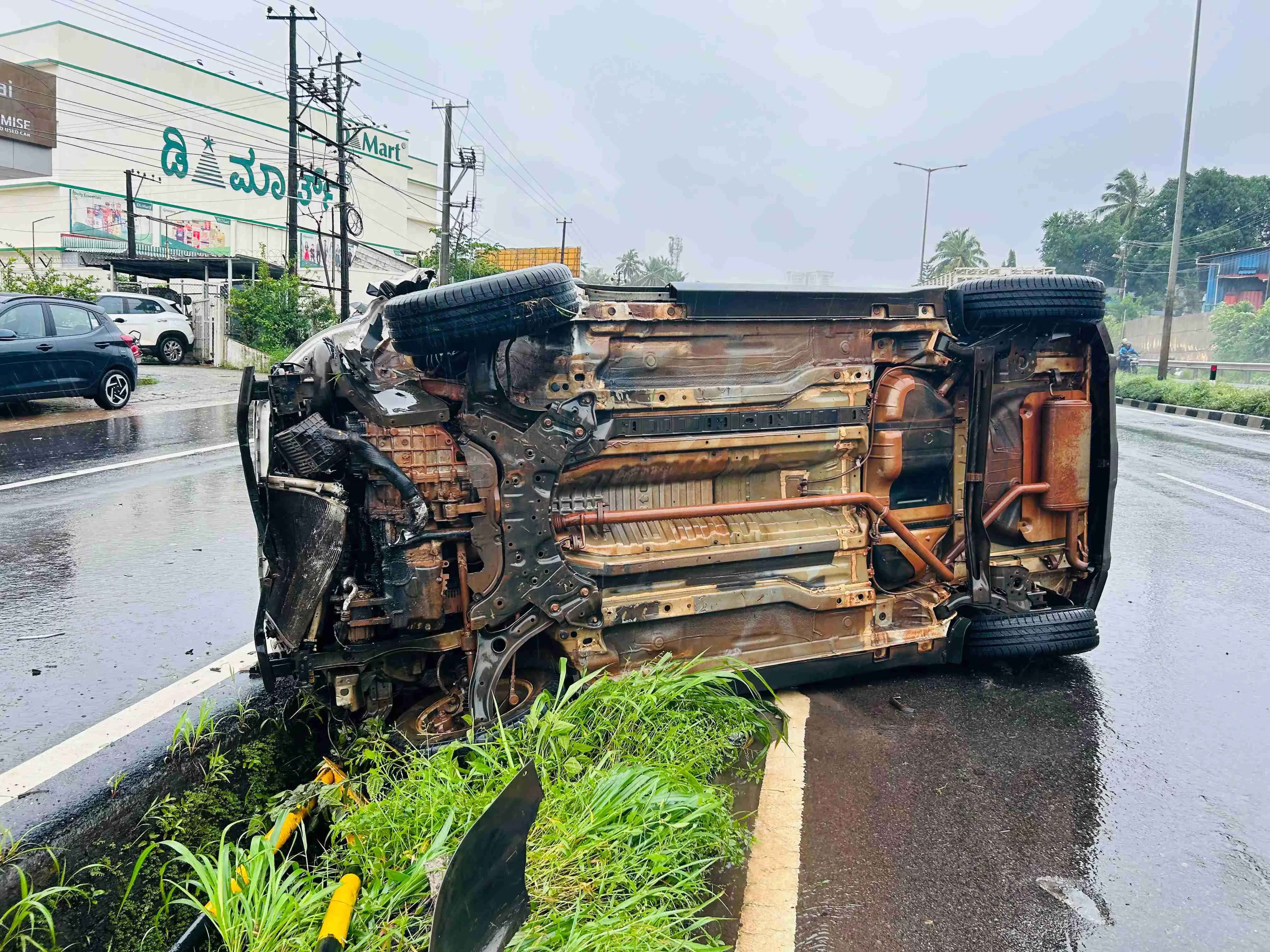 The duo was driving from Koolur towards the Karnataka Polytechnic (KPT) Junction. As they reached the Kuntikan Junction, the driver lost control over the car resulting in the vehicle skidding on the road and overturning, before ramming into the barricade in the middle of the stretch.