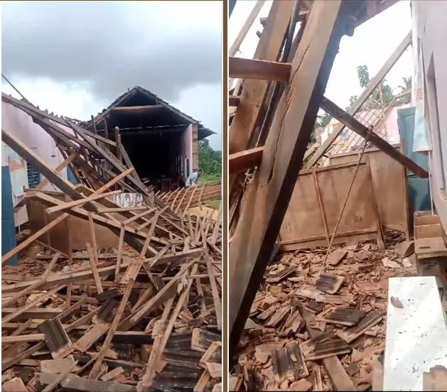 Meanwhile, parents have expressed their displeasure over the "irresponsibility of the teachers" who made the students sit inside the building where repair work was going on. Parents have also complained to the Puttur field education officials about this.