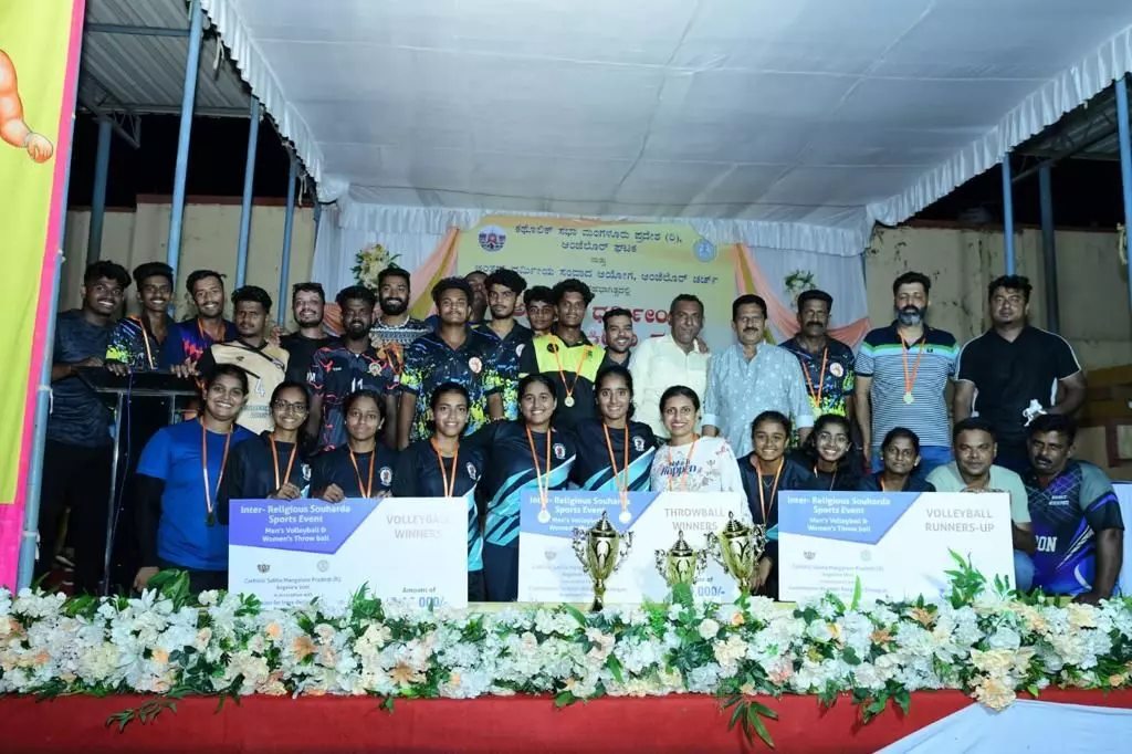 Mangaluru: Angelore Unit of Catholic Sabha Mangalore Pradesh (R) partnered with the Inter-Religious Dialogue Commission of the parish to organize an inter-religious volleyball tournament for men and a throw-ball competition for women on December 10, 2023.