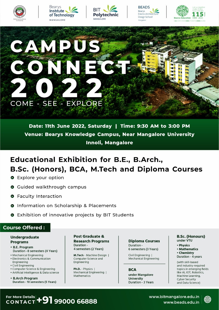 Bearys Academy of Learning's Talent Hunt along with Campus Connect program will be held on Saturday, 11th June 2022, at Bearys Institute of Technology, Inoli, Mangalore, a release from the academy stated.