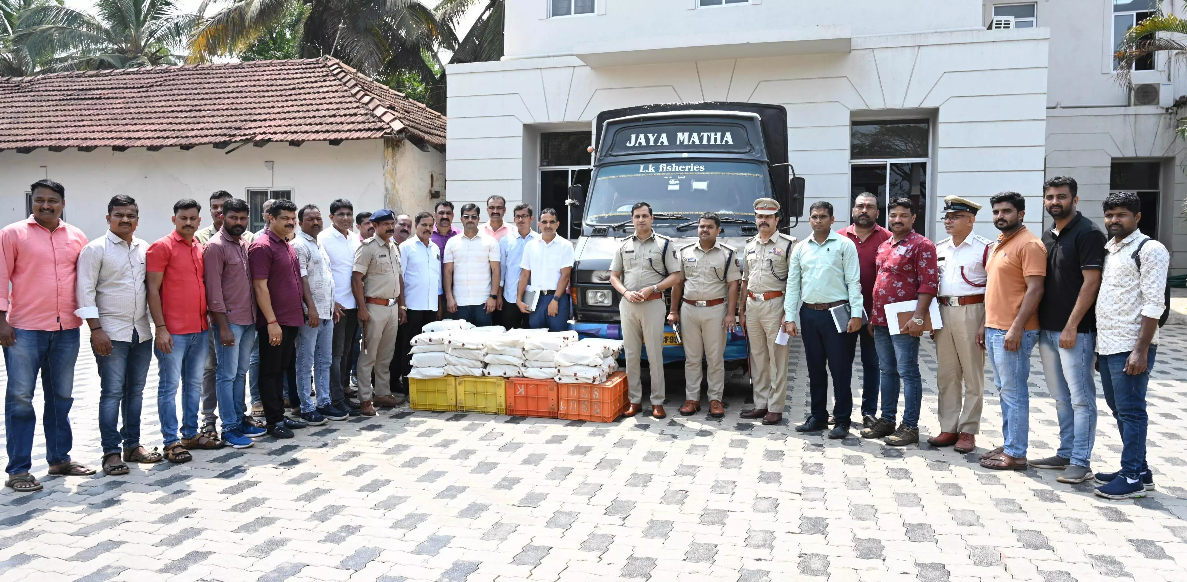 The Commissioner told reporters in the city that the arrested men, Ajay Krishnan U, Jeevan Singh, Moideen Shabbeer, and Mahesh Dwarakanath Pande, had been transporting the narcotics to Kerala through Mangaluru. The CCB Police, who received information that a large quantity of ganja was being smuggling within the jurisdiction limits of Konaje Police Station, conducted an investigation in the area and seized the narcotics as well as a car and a mini truck that were being used by the smugglers.