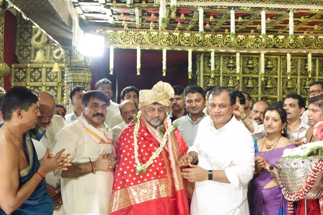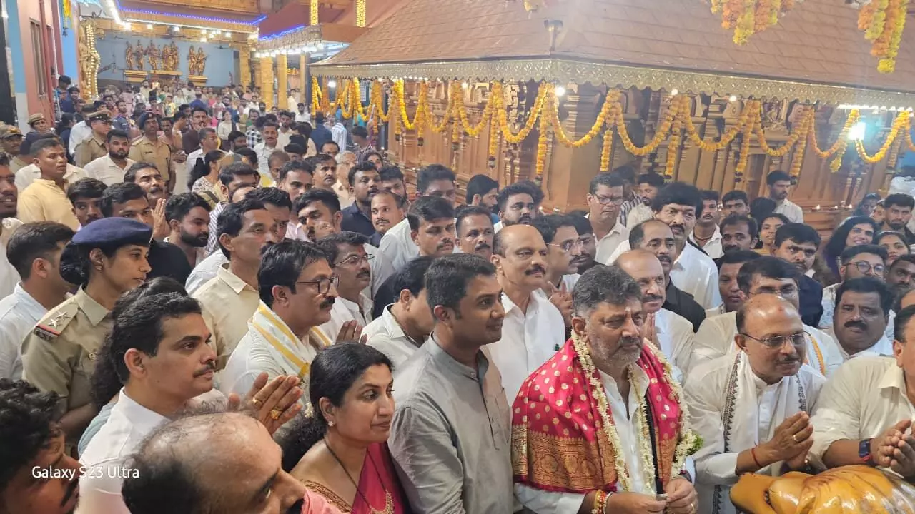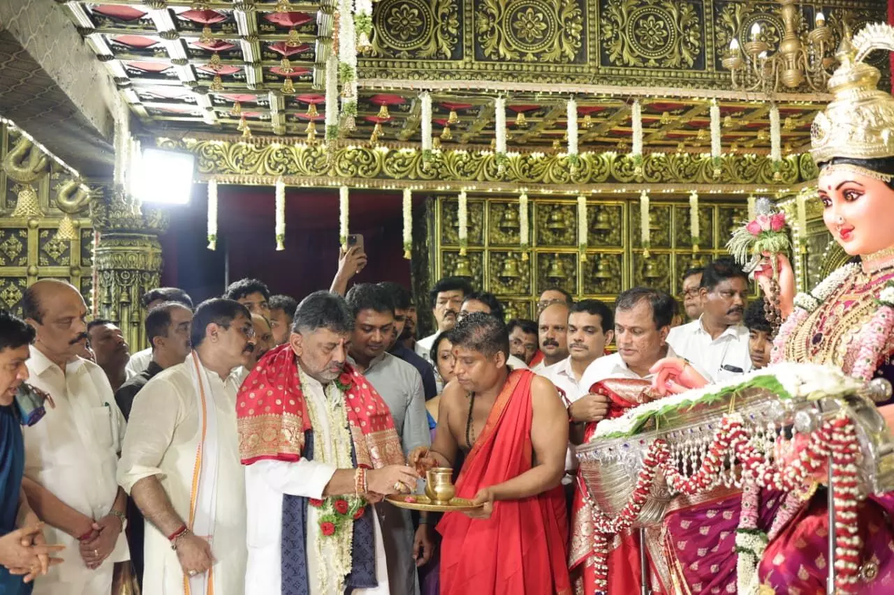 Mangaluru: Deputy Chief Minister DK Shivakumar participated in the Dasara celebrations organized at Shri Gokarnanatha Temple in Kudroli in the city on Wednesday night.