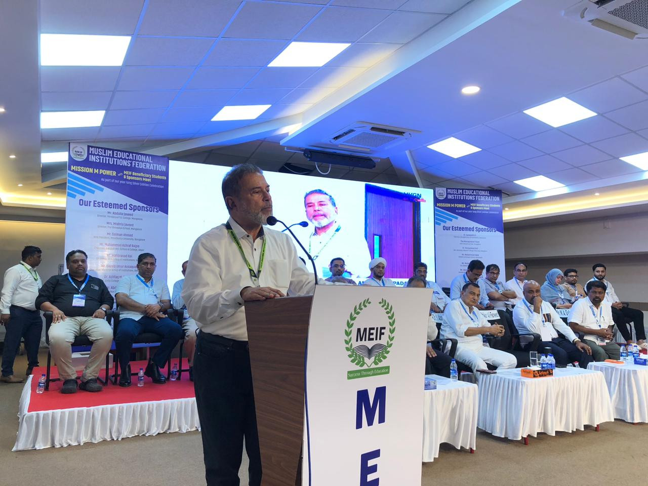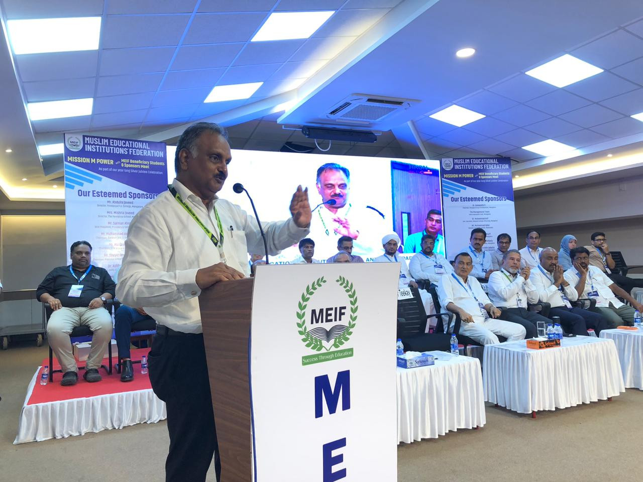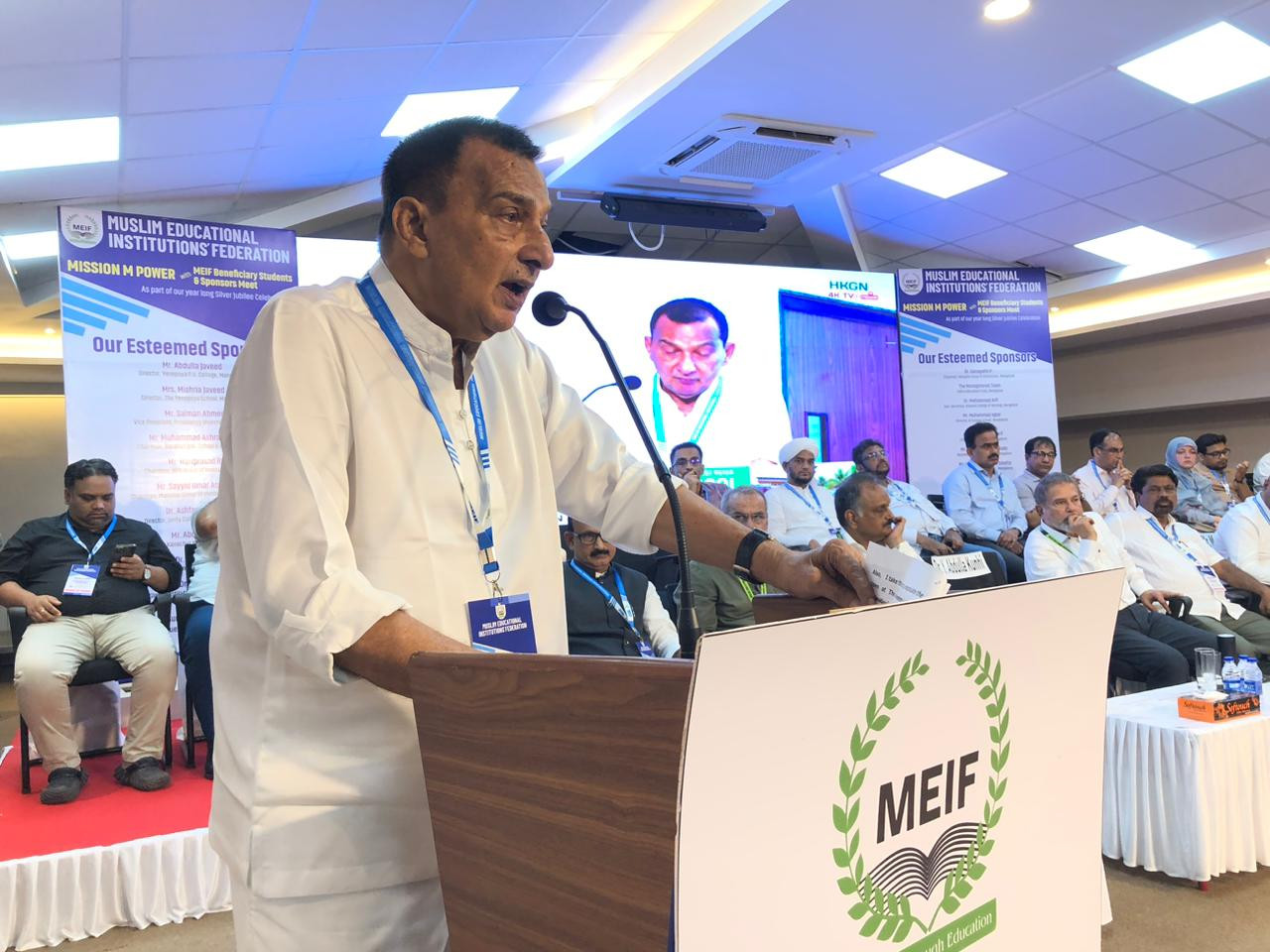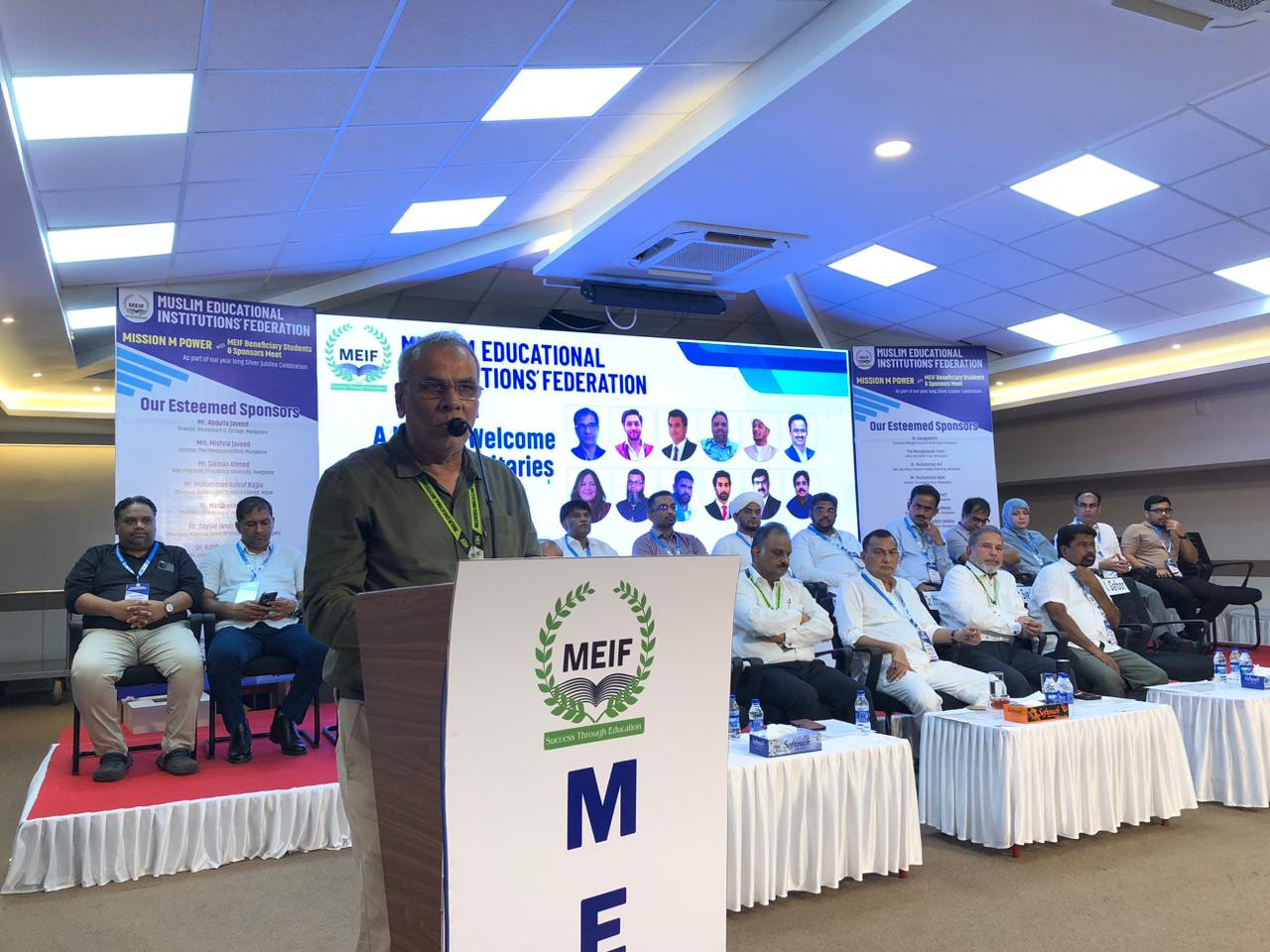 Umar Teekay, Hon. President of MEIF Central Unit, delivered the keynote address and spoke about the importance of empowering the community through education. He elaborated on MEIF’s vision and mission, emphasising the need for continued support to students from underprivileged backgrounds.