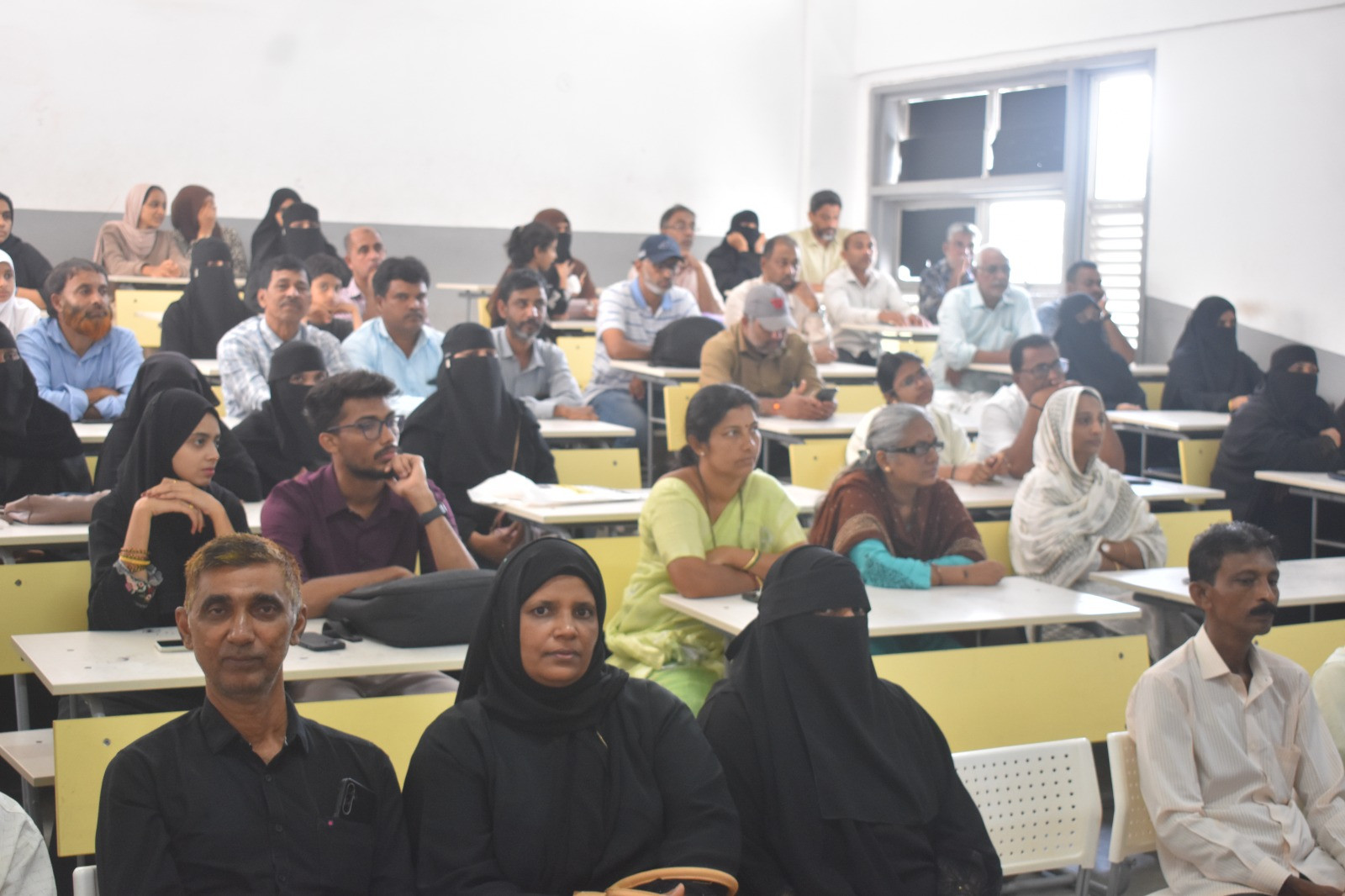 The Chief Guest, K. Raju Mogaveera, K.A.S., Registrar of Mangalore University, addressed the students, stressing the importance of creativity and resilience in today’s competitive world. He said that innovative thinking and a forward-looking approach were crucial for success in academics as well as in professional life.