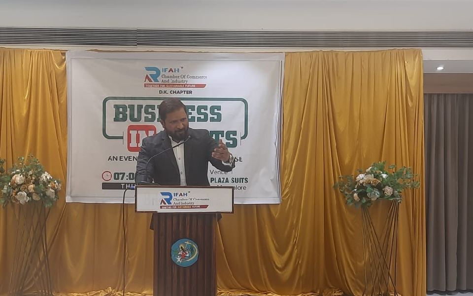 The Guest of Honour, Syed Mumtaz Mansoori, President of Rifah Karnataka and CEO of Rug-Rel Components & Systems Pvt. Ltd., addressed the audience with an insightful and thought-provoking speech. Rather than limiting the event to routine business discussions, Mansoori emphasised the importance of building a future together, especially within the Muslim business community.